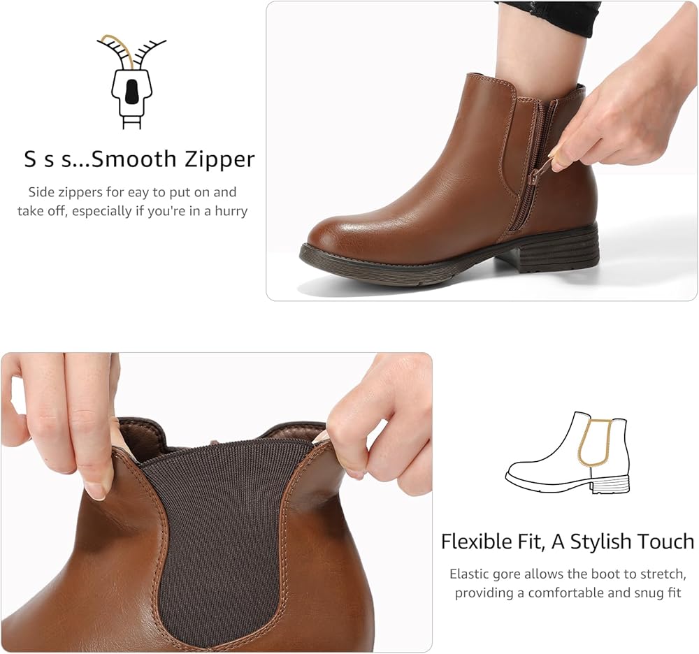 • [سهل الارتداء]: ألواح جانبية قابلة للتمدد تسمح لأحذية الكاحل هذه للنساء بالتمدد والتوافق مع شكل قدمك للحصول على ملاءمة مريحة ومريحة. السحاب الداخلي يمكن أن يجعل من السهل ارتداؤه وخلعه