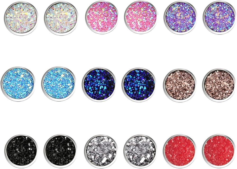 ❤تصميم أنيق❤ تتميز مجموعة الأقراط المرصعة المكونة من 12 زوجًا بألوان زاهية. الألوان تشمل: البرتقالي، والأسود، والأخضر، والأزرق السماوي، والأزرق الداكن، والأبيض، والأحمر، والوردي، والأرجواني، والشمبانيا، والفضي. طراز دقيق للفتيات والأطفال، النساء والرجال ويمكن أن تظهر مختلفة كل يوم