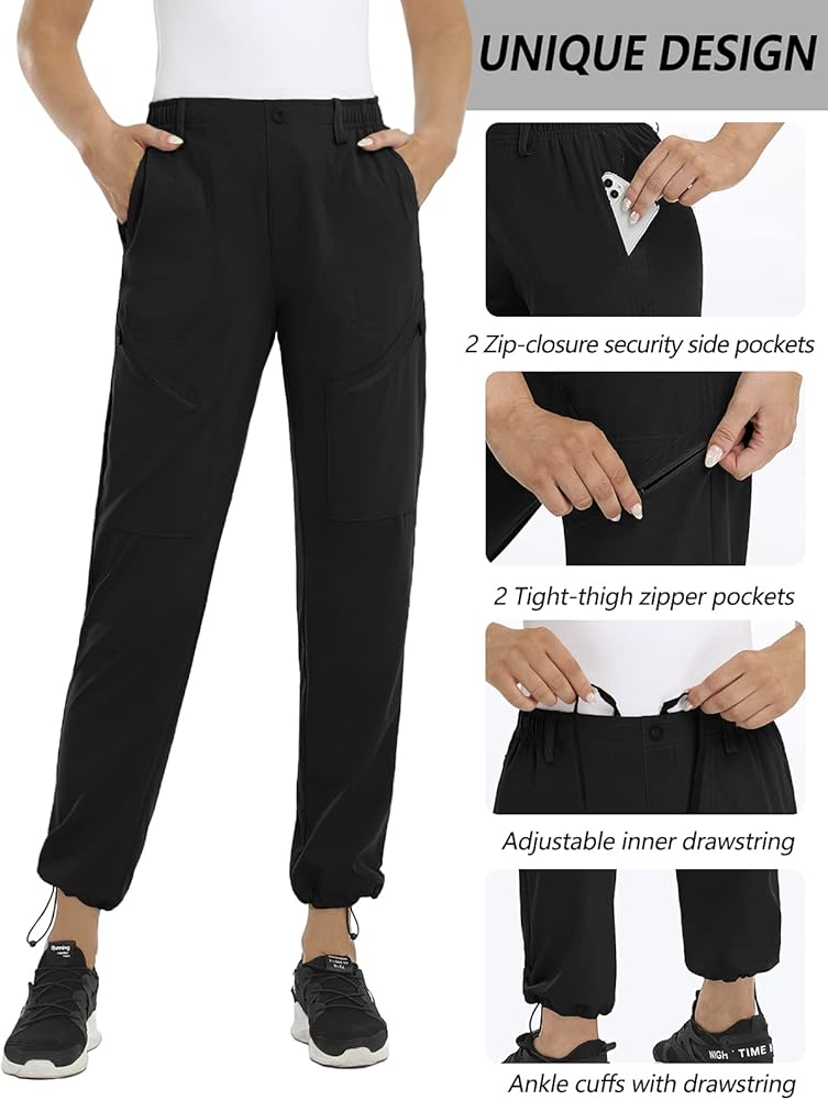 6 جيوب عملية: تأتي سراويل المشي لمسافات طويلة النسائية مع جيبين جانبيين بسحّاب، وجيبين جانبيين لليدين وجيبين بسحّاب لتوفير أقصى درجات الراحة والأمان. يمكنك تخزين هاتفك أو الوجبات الخفيفة أو البطاقات أو غيرها من الأشياء الثمينة في الجيب السحابي لسراويل الحمولة.