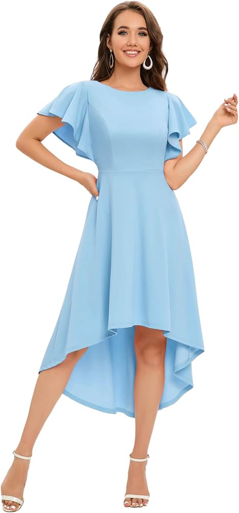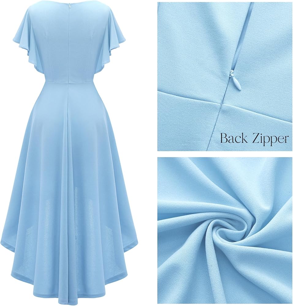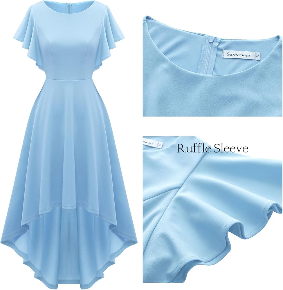 • 【فستان وصيفة العروس】- تصميم الأكمام المكشكشة والحاشية المنخفضة العالية يجعلك تبدين أكثر جمالاً وأنوثة. تتميز بأرجوحة مضيئة جميلة في الأسفل للرقص أو لتبدو جميلة أثناء المشي مع الصنادل أو الكعب العالي. سيكون رائعًا مع حزام لامع أو مجوهرات لإضافة القليل من التألق إليه.