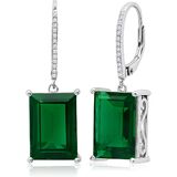 أقراط متدلية من أحجار كريمة من حجر الزمرد للنساء من الفضة الإسترلينية عيار 925 مع زخارف من الرافعة والتوباز الأبيض 14 ملم جوهرة الميلاد من MAX + STONE