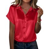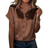 نسيج ناعم وحريري: البلوزات الحريرية الساتان للسيدات مصنوعة من 95% بوليستر و5% سباندكس، نسيج حريري مسامي وخفيف الوزن، والقمصان قصيرة الأكمام توفر لك لمسة أنثوية مريحة وشعورًا بالانتعاش.