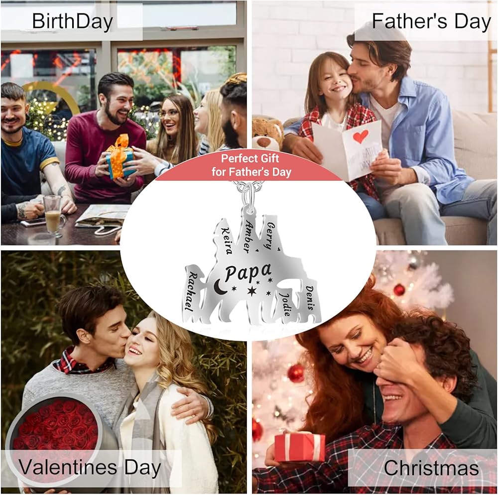 【 Fathers Day Necklace 】 The design of papa bear necklace with 1-8 cubs is meaningful and lovely. It symbolizes the reunion of the family -- we are always together.