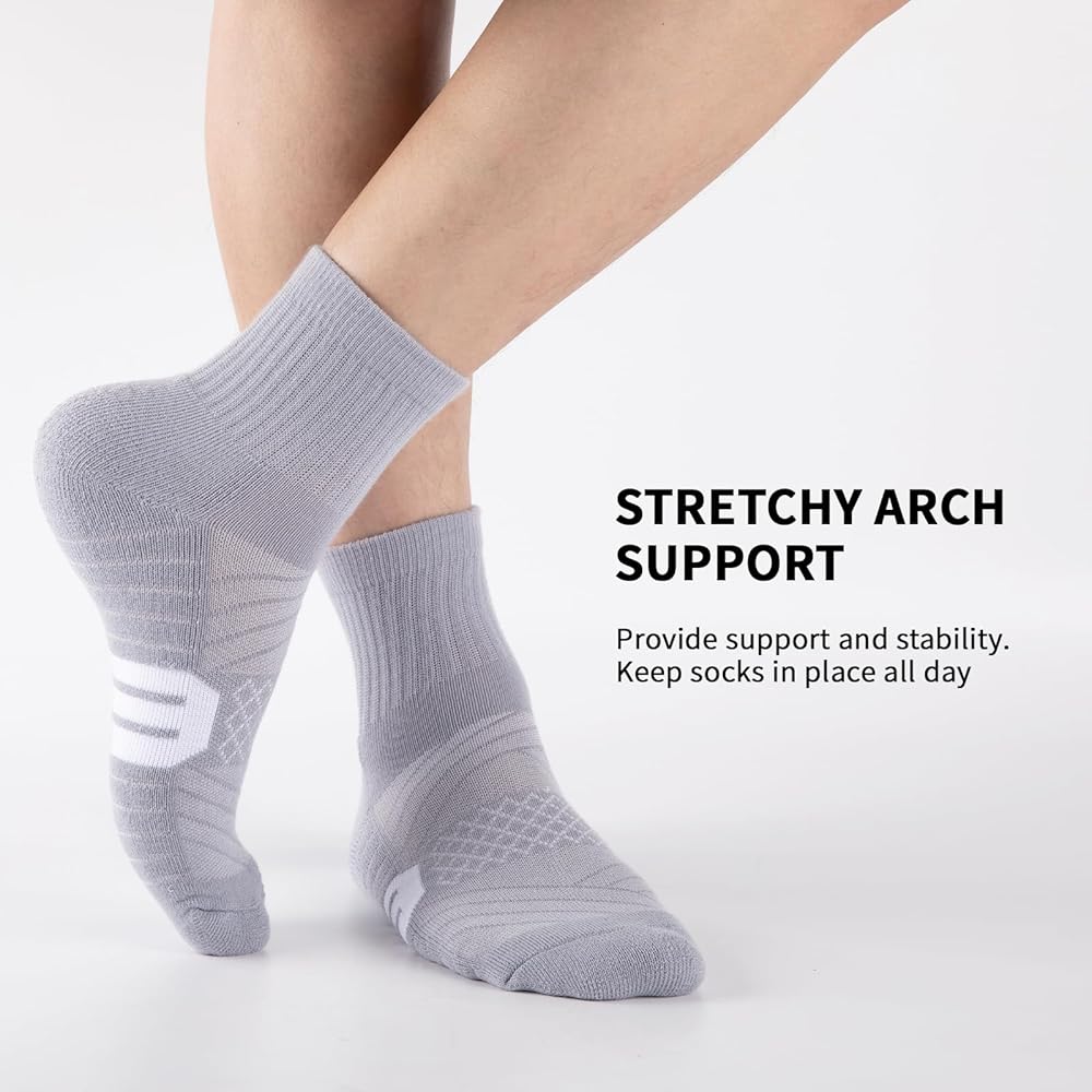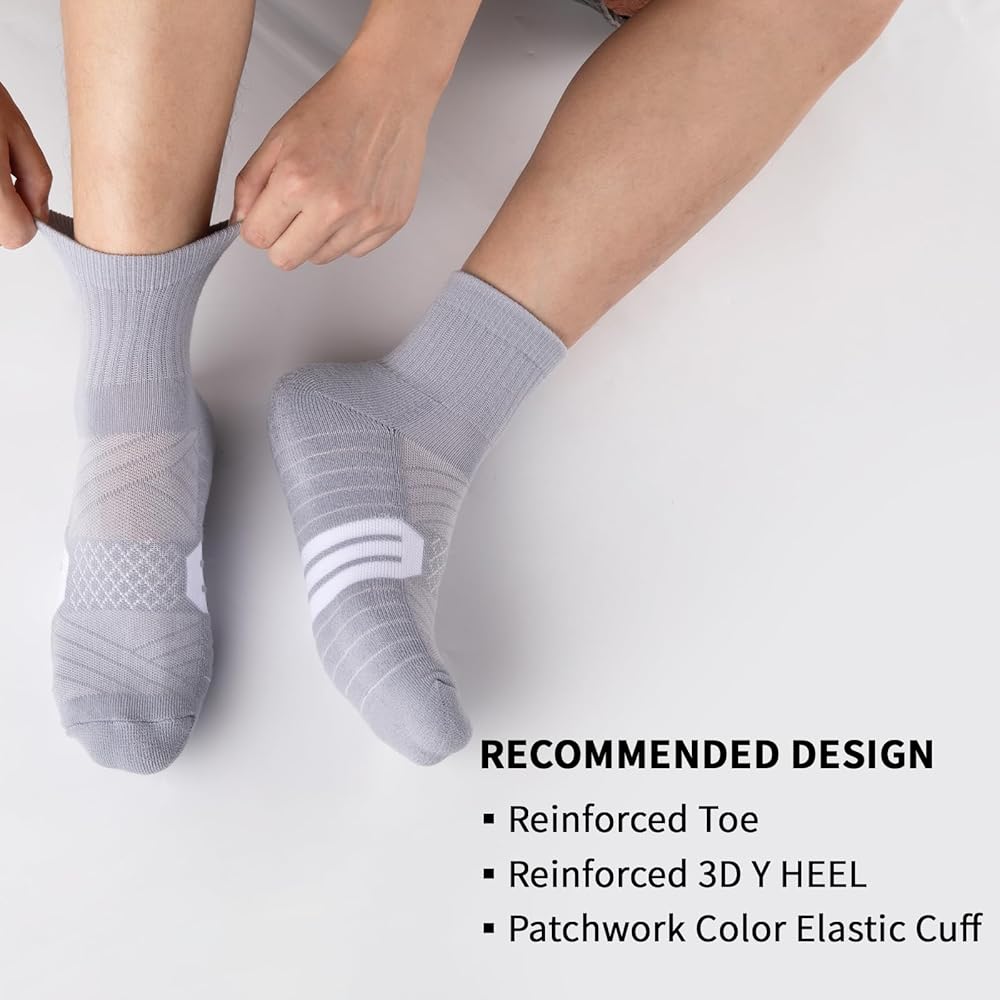 [جوارب الكاحل غير المنزلقة للرجال]: تتميز هذه الجوارب الرياضية الرجالية بدعم قوس مرن لاحتضان القدم بالتساوي والحفاظ على الجوارب الرياضية في مكانها طوال اليوم. هذه الجوارب الرياضية للرجال مع أطراف أكمام مريحة، ليست فضفاضة أو ضيقة. ارتفاع جوارب الجري هذه فوق الكاحل، هذه الجوارب الرجالية ربع الكاحل مناسبة لجميع المواسم.