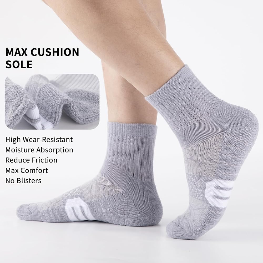 [جوارب عالية الكاحل قابلة للكسر]: هذه الجوارب الرياضية الربعية للرجال مصممة بتهوية شبكية في مشط القدم، والتي يمكن أن تعزز دوران الهواء وتطلق الحرارة لتجفيف القدم. هذه الجوارب الرجالية الماصة للرطوبة مناسبة للجري وركوب الدراجات والعمل والمشي اليومي والتدريب والرياضة والتنزه سيرًا على الأقدام والجوارب الرجالية عالية الأداء!