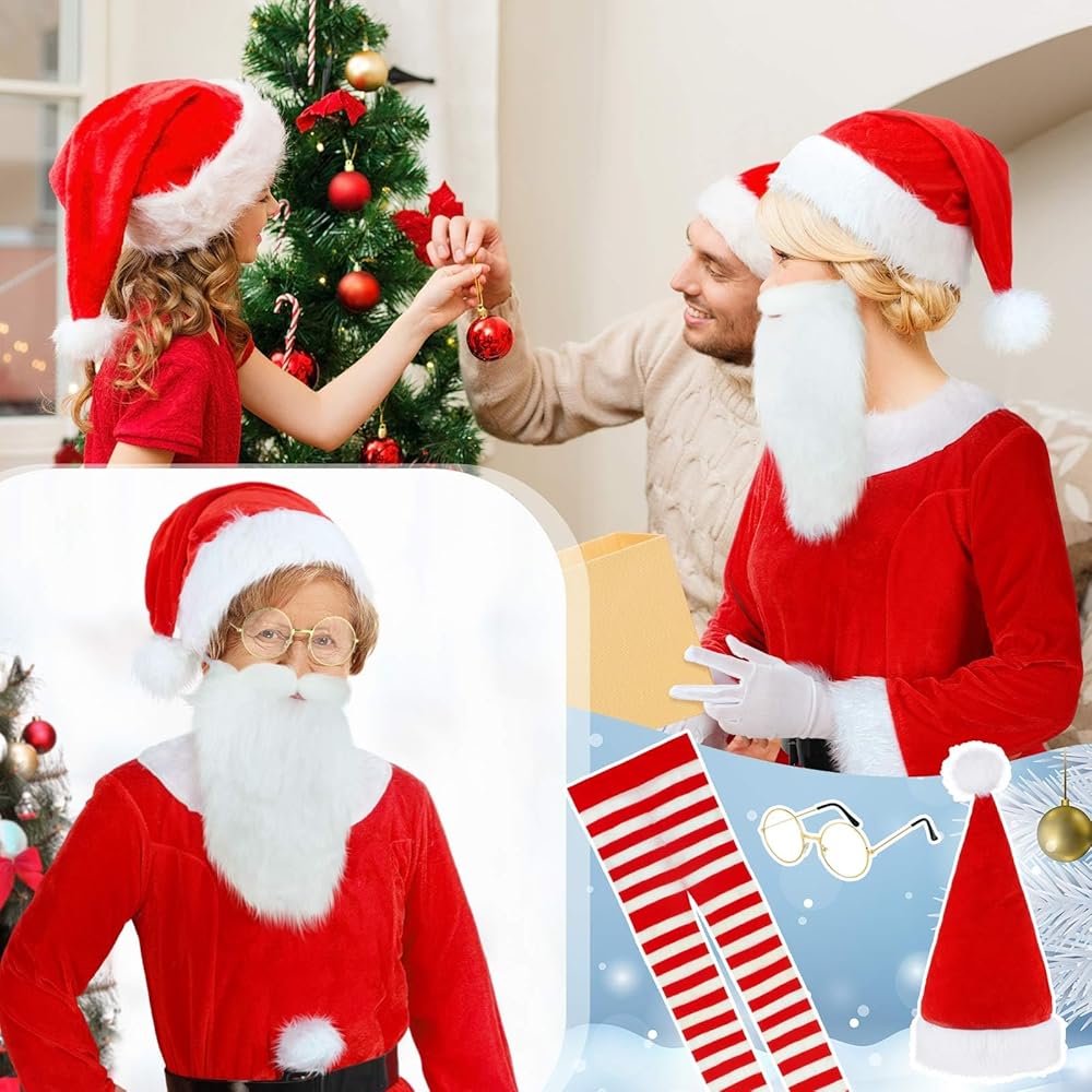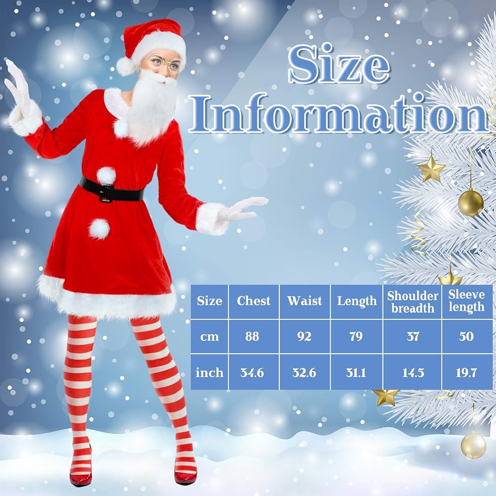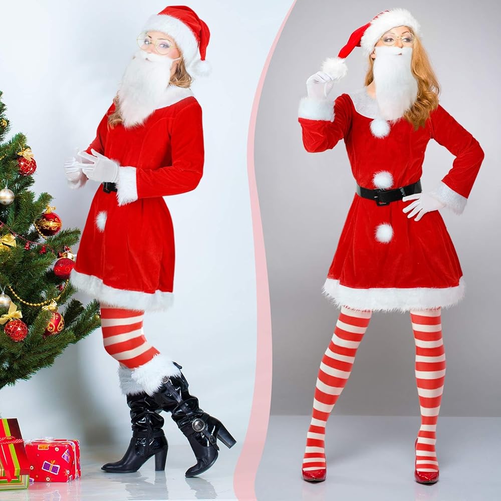 مجموعة الأزياء الكاملة: تتضمن مجموعة زي السيدة كلوز للسيدات ما تحتاجه في عيد الميلاد هذا العام: فستان، وقبعة، وزوج من القفازات، وزوج من النظارات، وضيق، ولحية. مع هذه العناصر، ستكون شخصًا احتفاليًا في حفلة عيد الميلاد القادمة