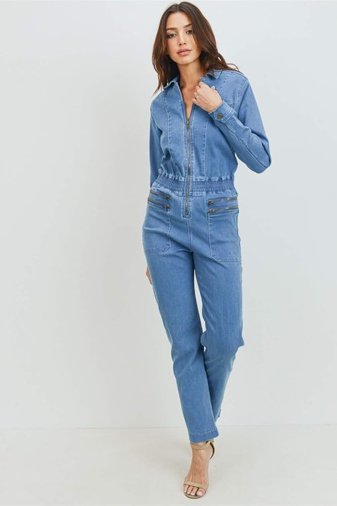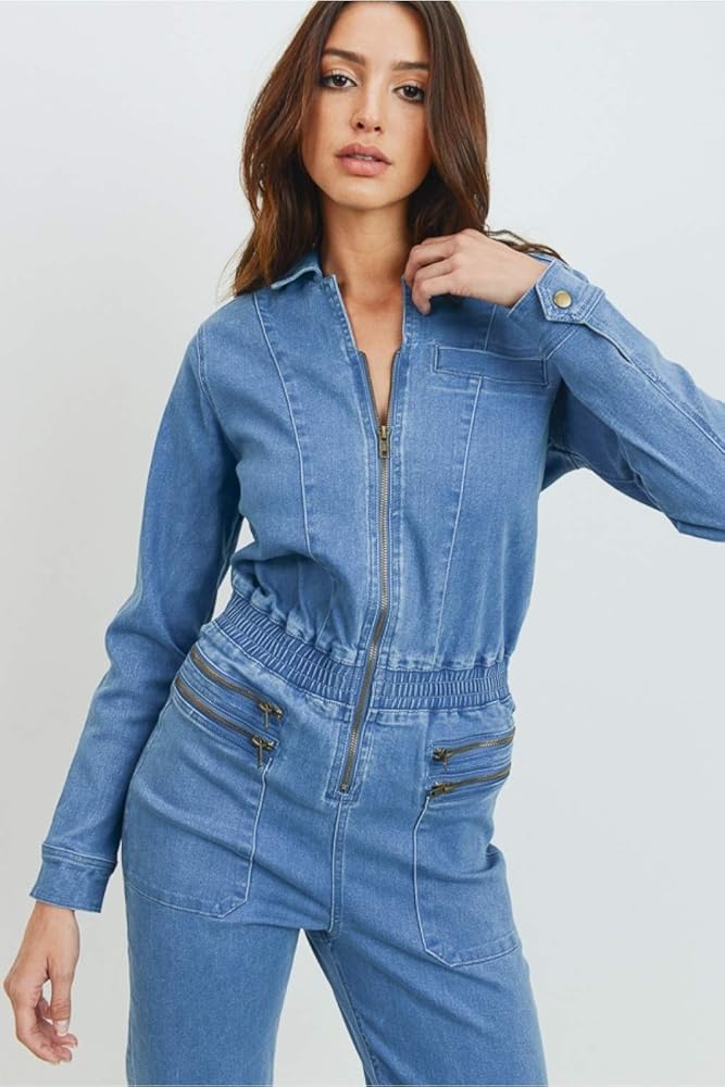 جمبسوت نسائي كاجوال من الدنيم تفاصيل دخانية يسهل ارتداؤه أثناء المشي على طول الشاطئ