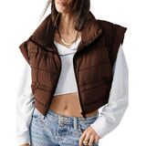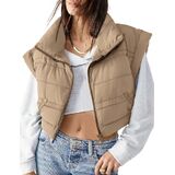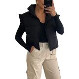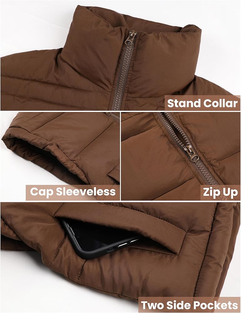 الميزة - سترات نسائية خارجية مع جيبين جانبيين، رقبة عالية، سحاب، بدون أكمام، سترة فقاعية للسيدات