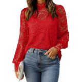 نسيج فاخر: بلوزة دانتيل عالية الجودة مع مادة مرنة، قمصان دانتيل طويلة الأكمام للسيدات مصنوعة من 90% نايلون و10% سباندكس، ناعمة الملمس ومسامية، خفيفة الوزن، مريحة وصديقة للبشرة