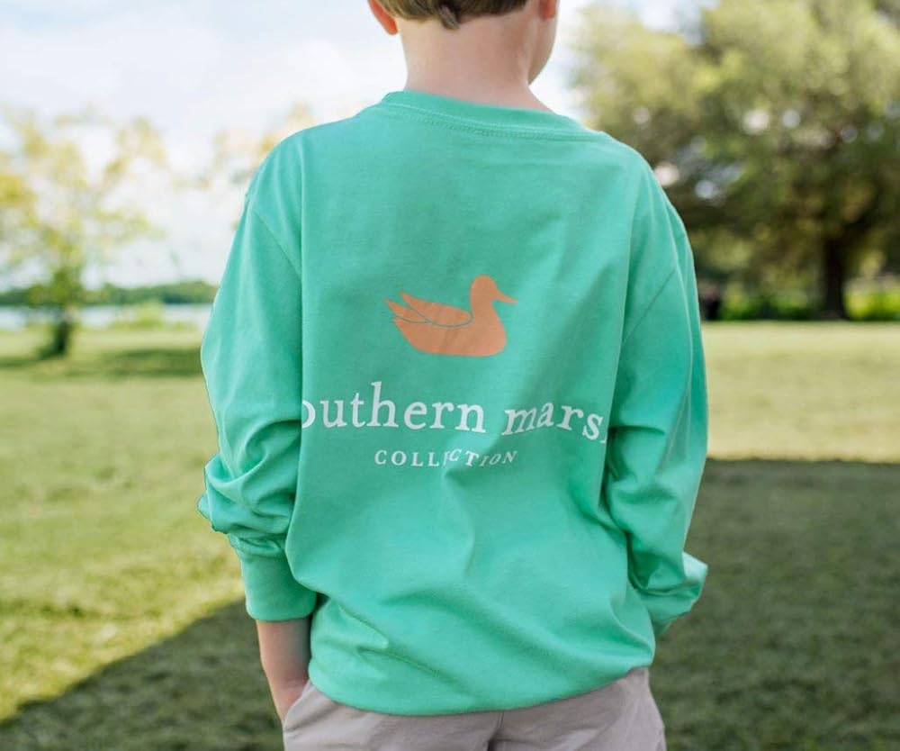 قميصنا الأكثر شعبية، يتميز بشعار Southern Marsh Mallard على الظهر، وشعارنا الأصلي على الجيب الأمامي. متوفر بجميع أنواع الألوان الرائعة! يعد تي شيرت Southern Marsh الأصلي إضافة رائعة لخزانة ملابس طفلك الصغير.