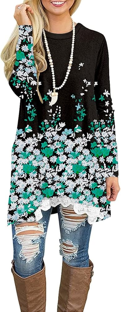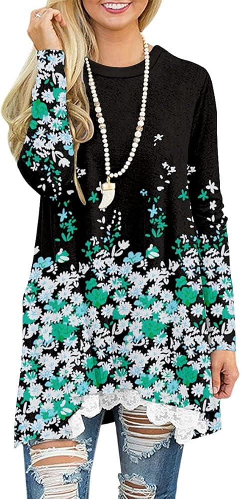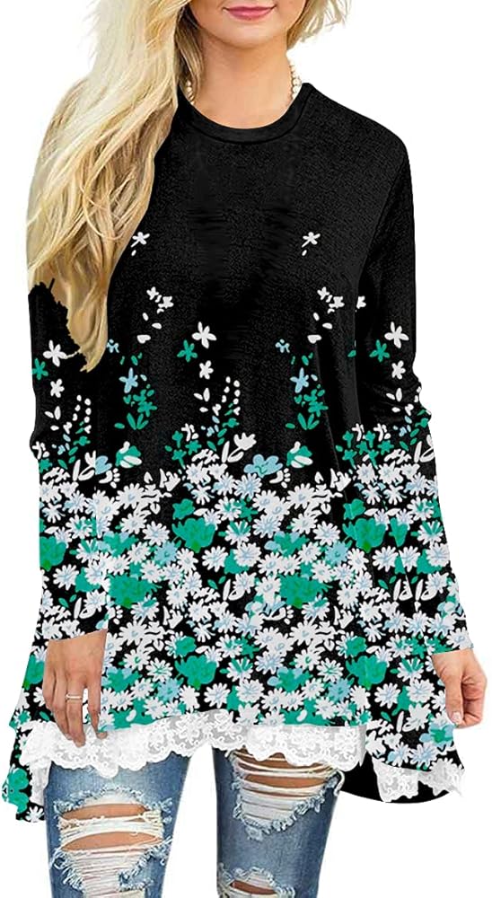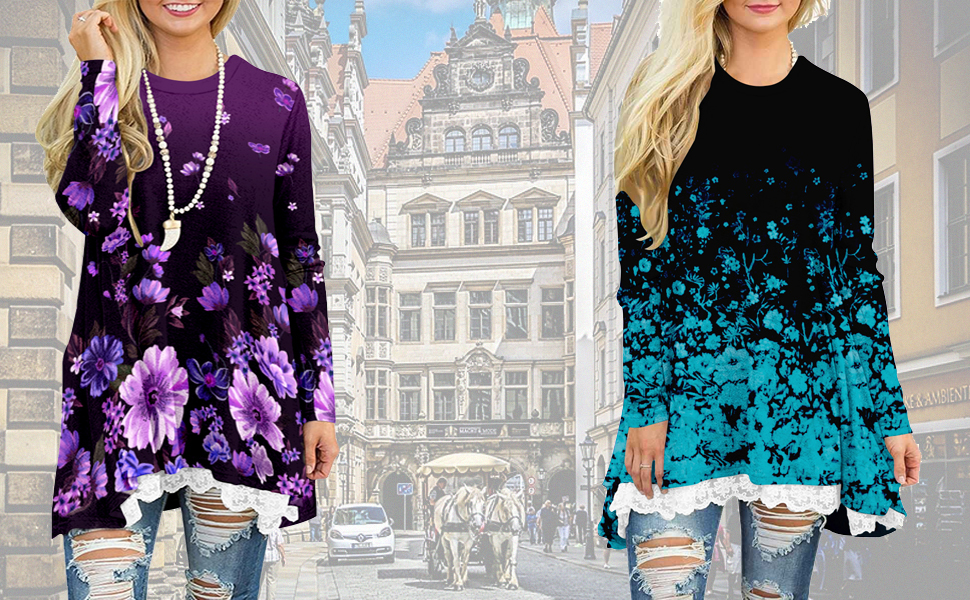 المزايا: بلوزات نسائية متأرجحة أنيقة للسراويل الضيقة، وأكمام طويلة، ورقبة واسعة، وحاشية من الدانتيل في الأمام، وتصميم على شكل حرف A، وطول فوق الركبة، وسهل إخفاء البطن، ومسامي وملائم، وسهل إظهار الشكل المثالي. مجموعة متنوعة تتوفر تصميمات طباعة مختلفة لإظهار أسلوبك الفريد. إنه اختيار جيد لخزانة ملابسك