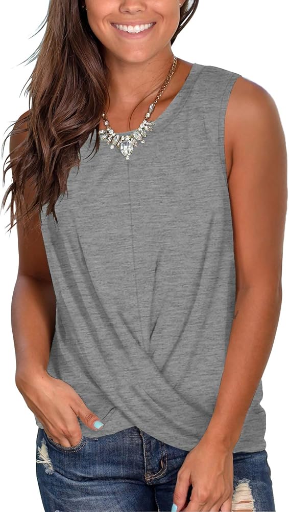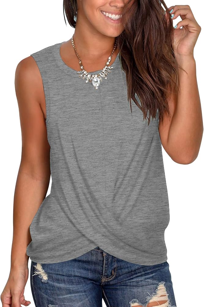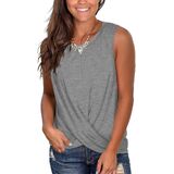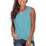 تصميم خاص: قمصان علوية بدون أكمام أمامية ملتوية، رقبة دائرية مريحة، بدون أكمام مناسبة، قمصان تونيك فضفاضة بلون موحد