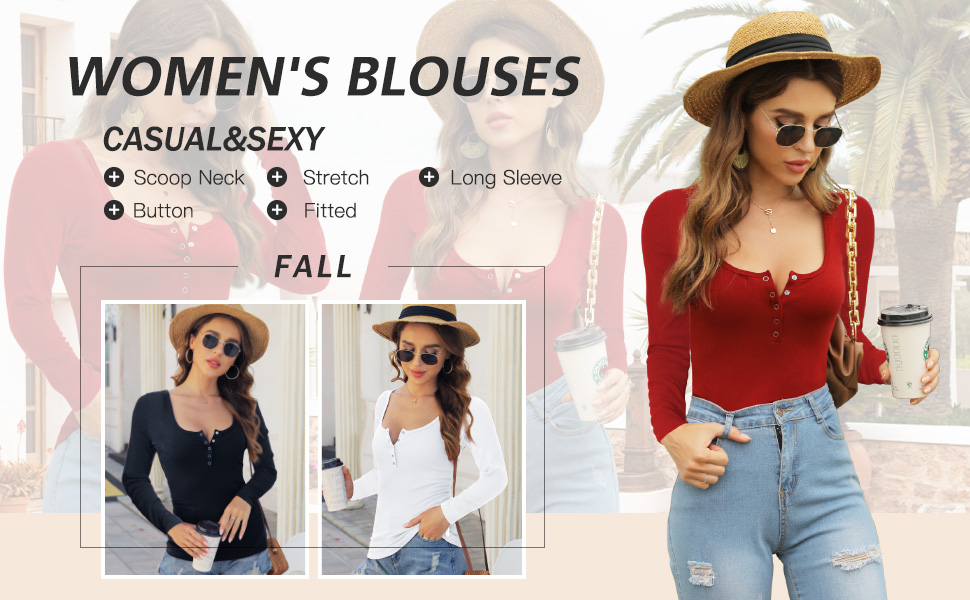 السمات: (يمكن إغلاق الأزرار أو فتحها) هذه القمصان ستجذب أي نوع من الجسم، رقبة منخفضة القطع، أكمام طويلة/بدون أكمام، نحيفة، مثيرة بأزرار لأعلى، قمصان مضلعة. هذه القمصان الأساسية طويلة الأكمام لها مظهر قابل للتخصيص، ناعمة للغاية بفضل قصته التنحيف ومظهره العصري، يمكنك ارتداؤه بسهولة مع السراويل الضيقة أو الجينز أو سترة الشيفون أو المعطف أو السترة أو زوج من سراويل اليوغا.
