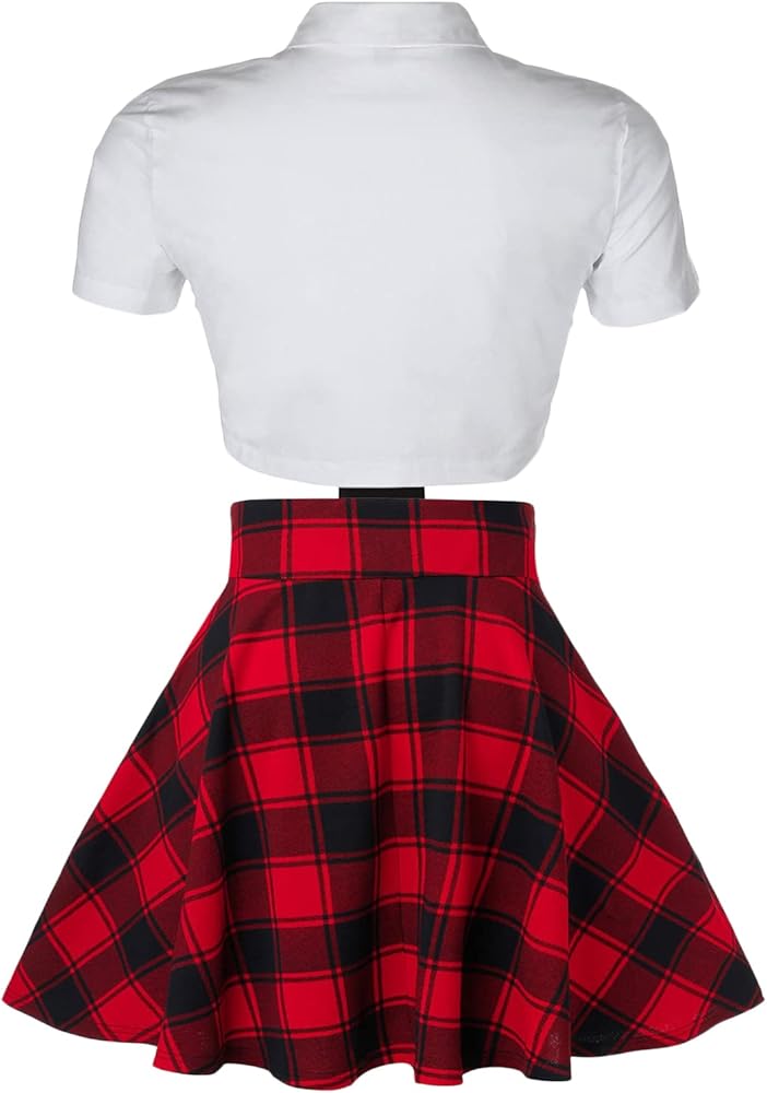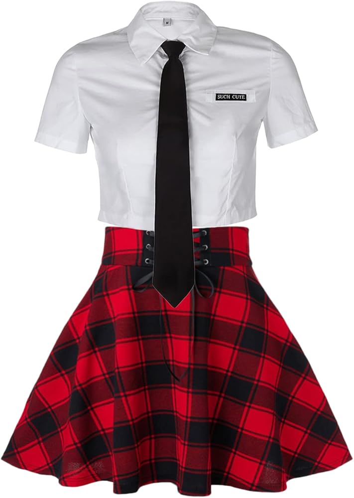 مميزات التصميم: قميص أبيض قصير، ربطة عنق لطيفة، يتماشى مع التنورة القوطية المنقوشة، يجعلك أكثر جاذبية وسحرًا وعصرية، وتبدو كفتاة مدرسية أصغر سنًا. التنورة الصغيرة المنقوشة، سحاب للإغلاق، خصر عالي، تصميم على شكل حرف A، رباط قابل للتعديل، النمط المطوي بنمط منقوش يضيف إحساسًا بالأناقة والتفرد إلى الشكل العام، أنيق وأنثوي، حاشية التنورة الواسعة تغطي الوركين مليئة بالإغراء والإثارة، أضف الكثير من المشاغبة والمثيرة، وأضف المزيد من الإثارة على سحرك في أي وقت.