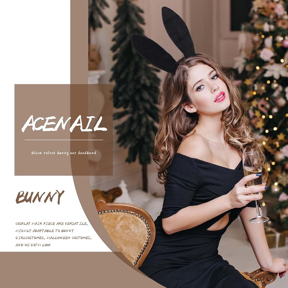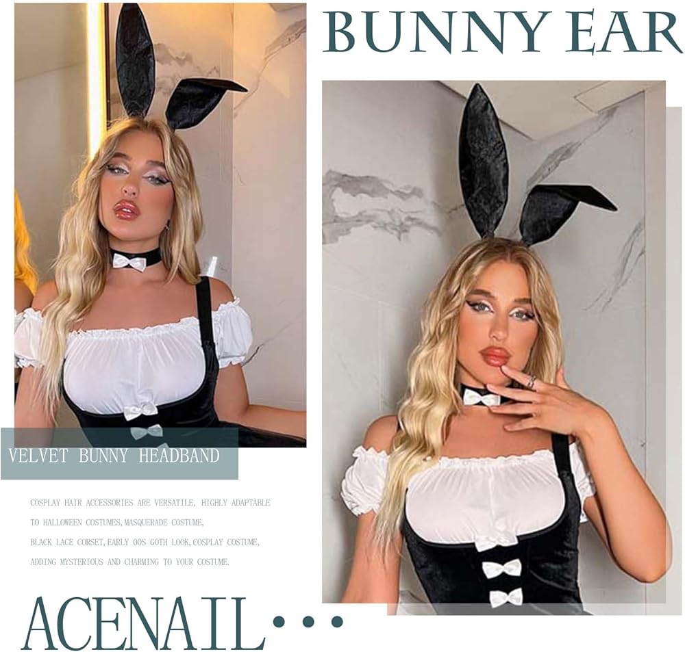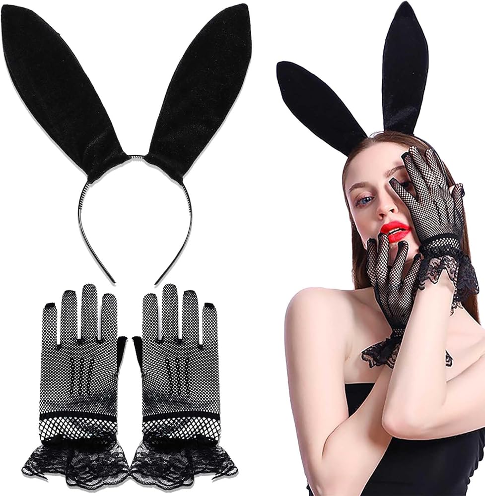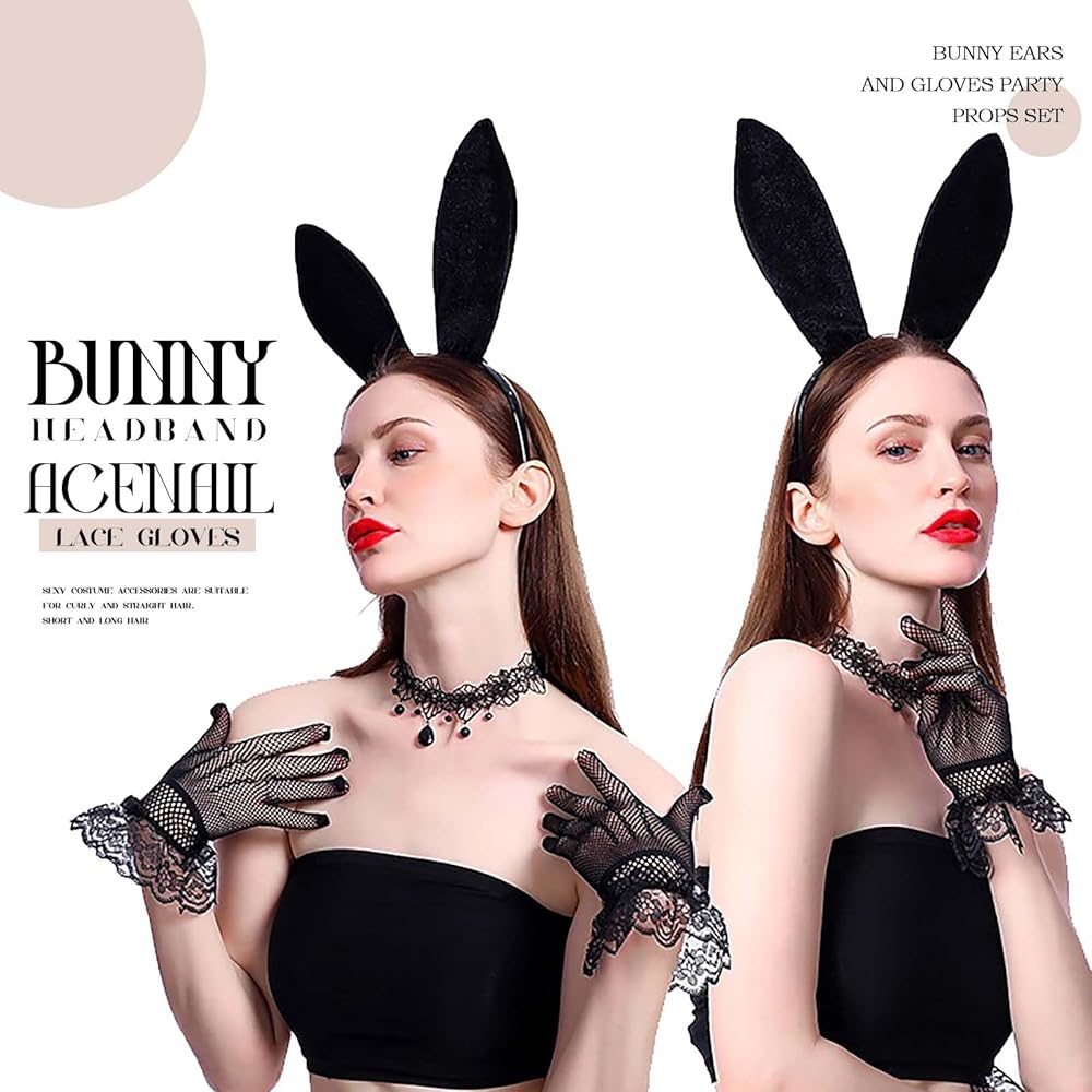 Acenail أرنب آذان عقال مثير أسود مخملي آذان أرنب عصابات مع قفازات الدانتيل الطرف الديكور أغطية الرأس قفازات قصيرة الأرنب زي الملحقات مجموعات بلاي بوي الأرنب زي الأرنب الأذن عصابات الشعر لجميع القديسين حفلة تنكرية