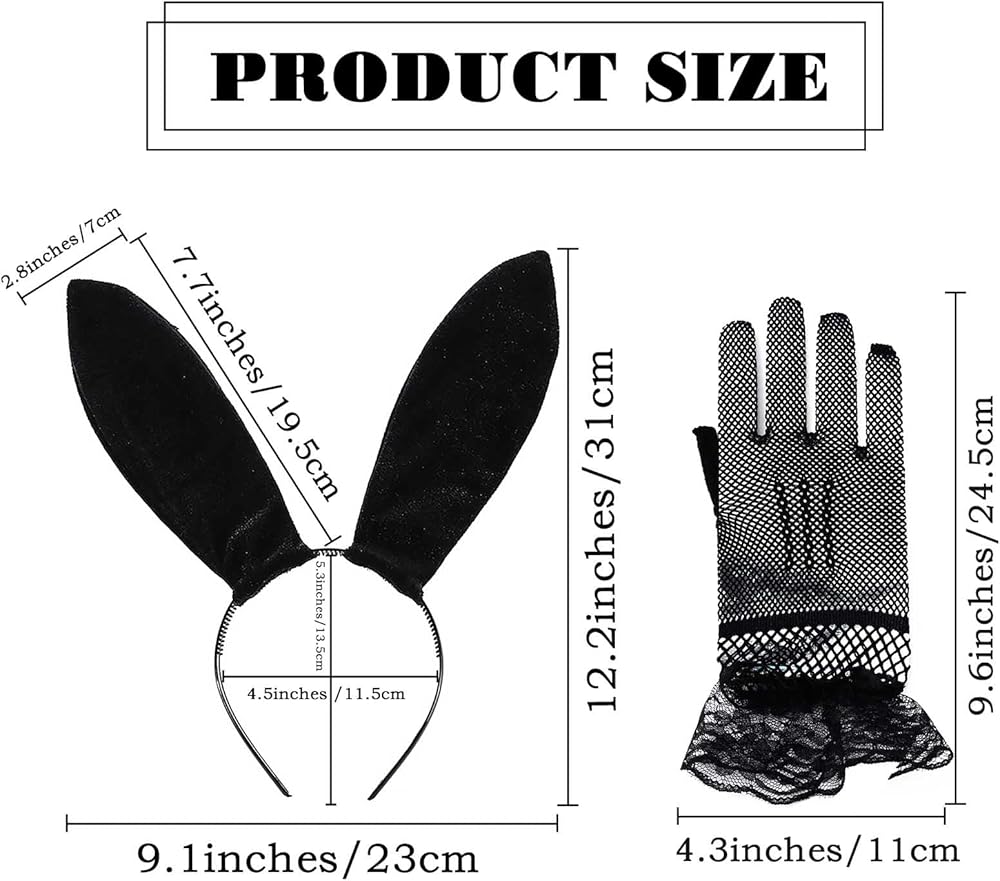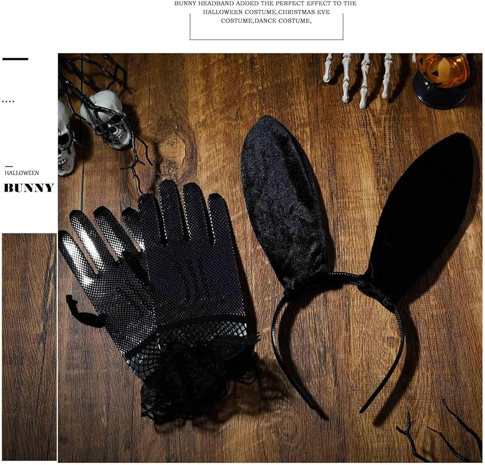 تعمل مجموعة آذان الأرنب المخملية السوداء والقفازات الشبكية على خلق أجواء احتفالية دافئة ومثالية لتزيين الحفلات أو التقاط الصور.
