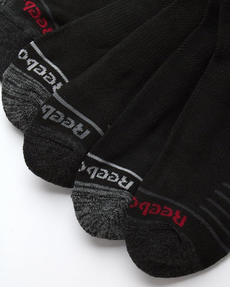 كعب وأصابع قدم معززة: تتوقع أن تدوم الجوارب لفترة طويلة، تقدم ريبوك كعبًا وأصابع قدم معززة لإطالة عمر جواربك لمنع الثقوب الناتجة عن الاحتكاك بالأحذية والتآكل اليومي.