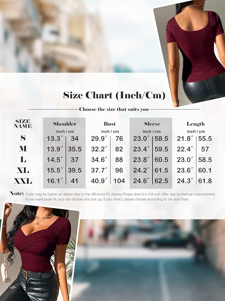 • 😀 المزايا: قمصان عصرية للنساء تتميز برقبة متقاطعة عميقة على شكل حرف V، مقاس نحيف قابل للتمدد، قمصان علوية مضلعة، قمصان نصف كم قصير، تي شيرتات أساسية بألوان سادة سادة، نمط كاجوال للعمل، قمصان علوية أنيقة للنساء
