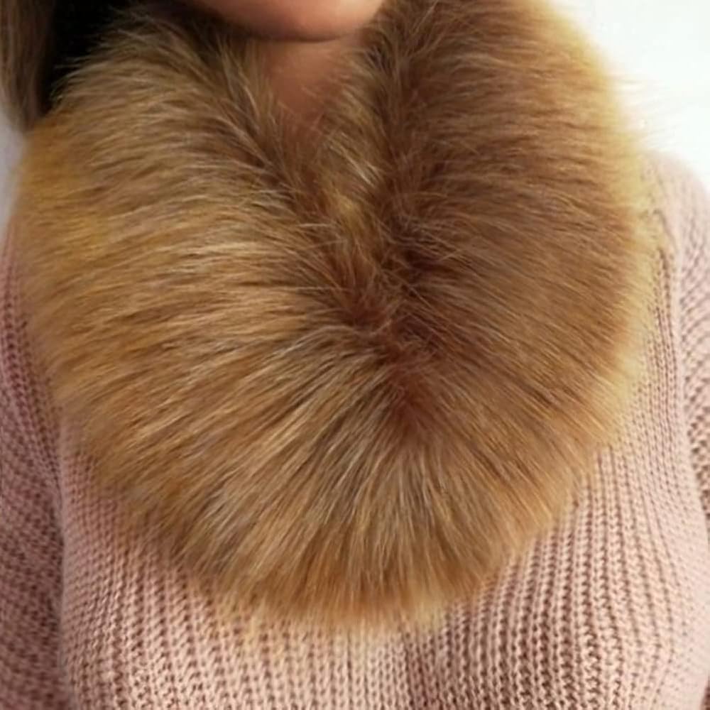 وشاح بياقة من الفرو الاصطناعي، وشاح من فراء الثعلب الصناعي للنساء من MoreChioce، وشاح فرو لتدفئة الرقبة في فصل الشتاء، وشاح من القطيفة الدافئ، إكسسوارات الملابس، 57 سم × 9.5 سم، بني