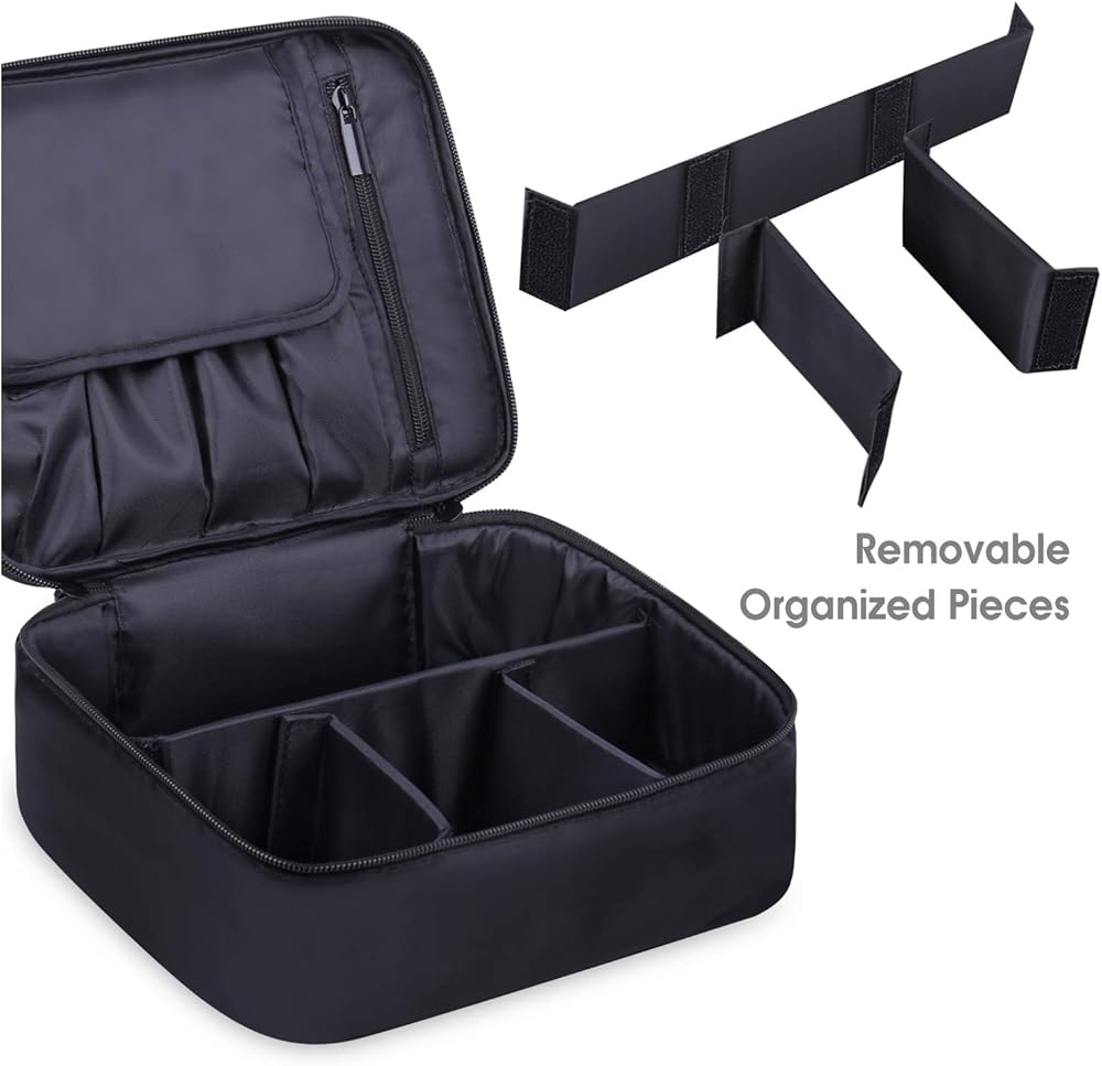 ✅ فواصل فيلكرو مرنة - 3 أقسام صغيرة، قسم واحد كبير يمكنه استيعاب مستحضرات التجميل الخاصة بك بسهولة مثل كريم الأساس والكونسيلر والماسكارا وظلال العيون والمساحيق وأحمر الخدود وأحمر الشفاه والبرونزر وما إلى ذلك.