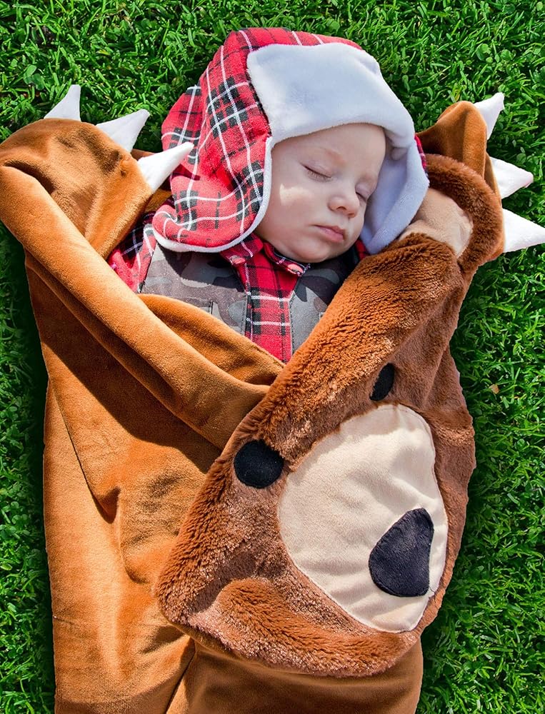 • سالوبيت أحمر بدون أكمام، قبعة حمراء مع تفاصيل شخصية الطيور؛ بطانية قماط على شكل جناح أحمر مع سطح خارجي بيضاوي مشقوق يُظهر عند لفها