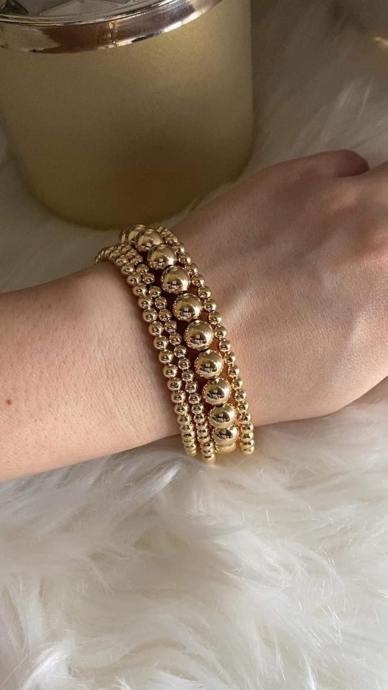 سوار خرز ذهبي للنساء: سوار الخرز الكروي الخاص بنا مصنوع من النحاس المطلي بالذهب الحقيقي عيار 14 قيراط، وهو متين ومقاوم للتشوه. أساور الخرز الصغيرة الأنيقة ناعمة ولها مصقول عالي جدًا، والذي لن يخدش بشرتك. هذه الأساور الأنيقة والفريدة من نوعها المصنوعة من الخرز الصلب لامعة ومريحة للارتداء في الحياة اليومية.