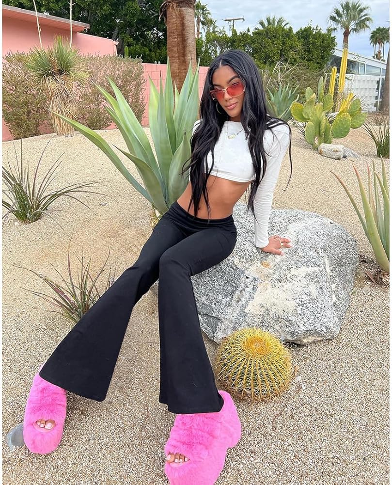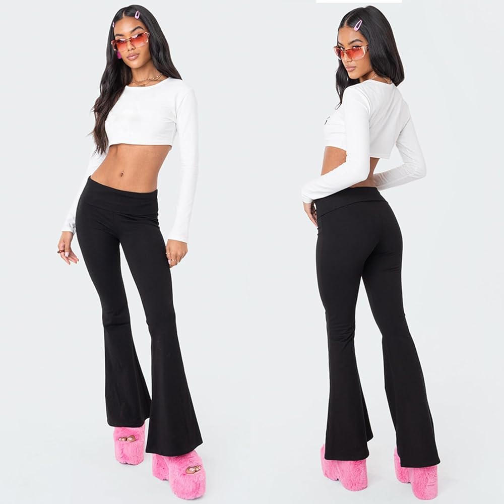 المواد: السراويل الضيقة النسائية ذات الجرس مصنوعة من البوليستر الفاخر، عالي التمدد، ناعم، مسامي، مريح للغاية للملابس الرياضية والملابس الكاجوال