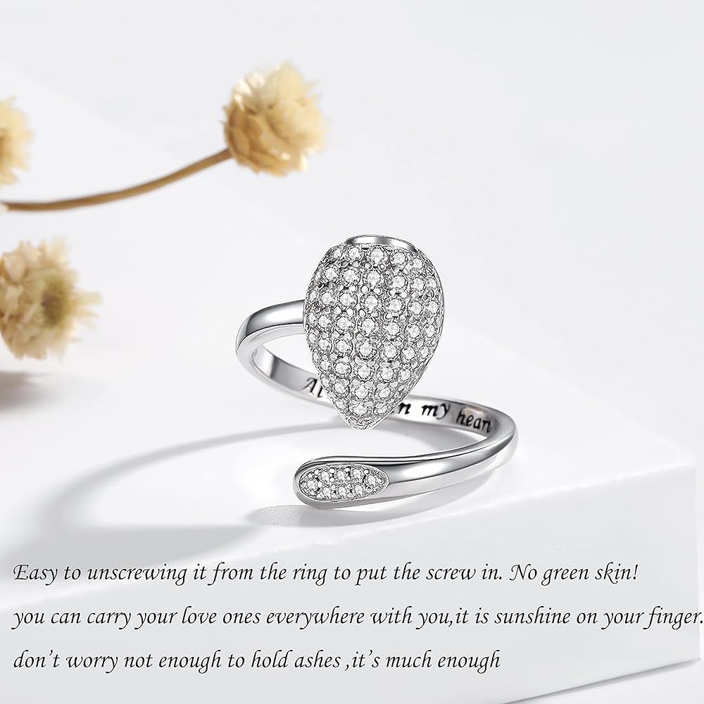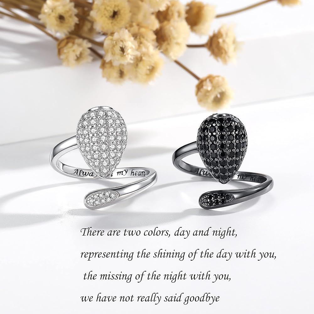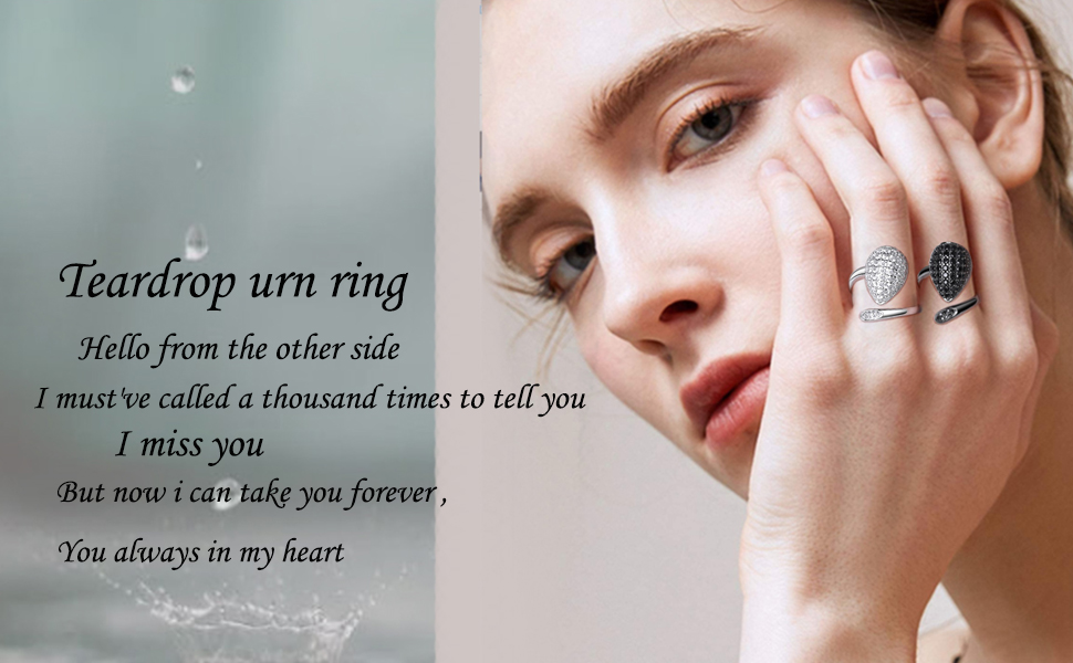 ❤When the passing of relatives, every time I close my eyes, thinking that I can forget, but shed tears, but did not deceive myself, wear this bling teardrop urn ring,keeps your heart close to his/hers at all times,fashionable ashes ring and vintage black ashes ring gift for you.