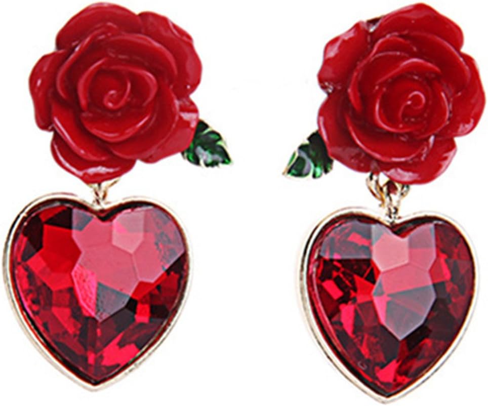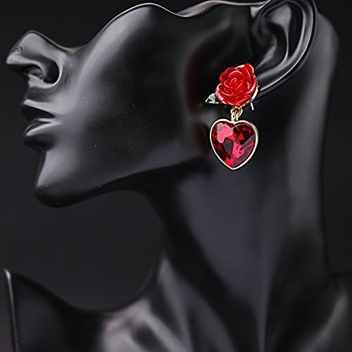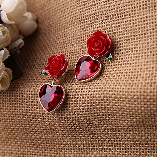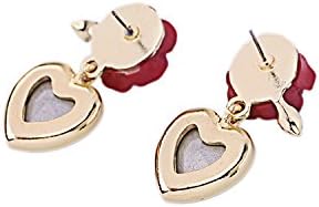 XCFS 18K الذهب مطلي خمر مقلد روبي القلب و زهرة حمراء المرأة بنات أقراط, ذهبي