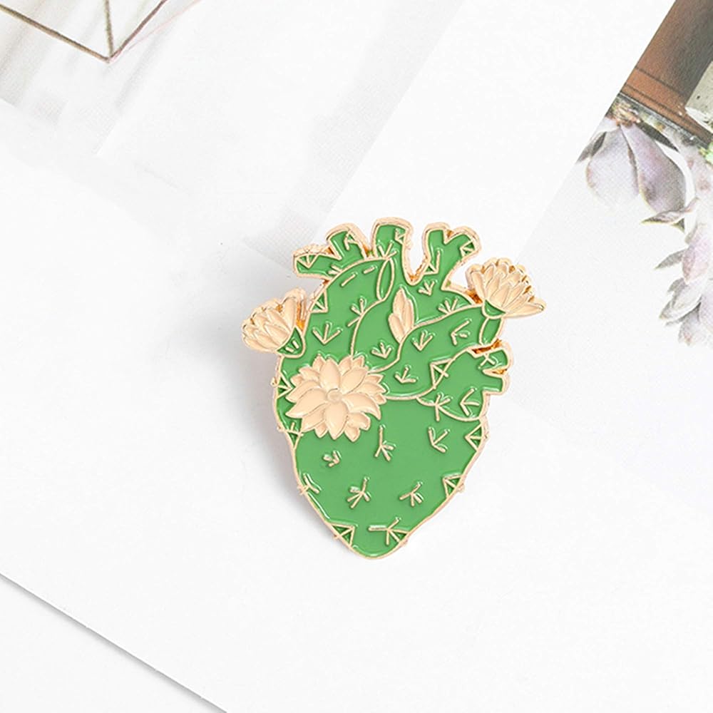 تم تصميم دبوس بروش المبتكر هذا بقلب وصبار تشريحي كلاسيكي. الألوان الزاهية والرسومات الزاهية تجعلها خيارًا رائعًا للاقترانات العصرية والإكسسوارات الزخرفية. تتوفر ألوان مختلفة لتختار منها، مما يضيف السحر والأناقة إلى مظهرك.