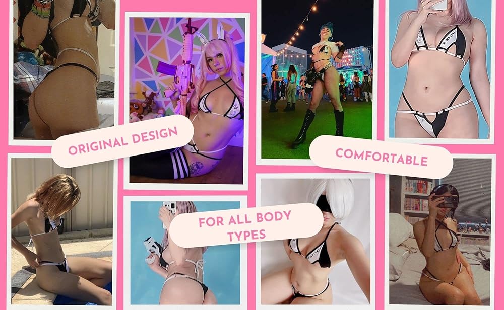 أقصى قدر من المرونة - مجموعة بيكيني Danger Gamer Bunny من kawaii قابلة للتعديل لتناسب جميع الأشكال والأحجام. تشتمل كل مجموعة على بيكيني علوي وسفلي يناسب المقاسات الصغيرة إلى الكبيرة: XS/S، S/M، M/L، L/XL، XL/2XL، 2XL/3XL، و3XL/4XL.