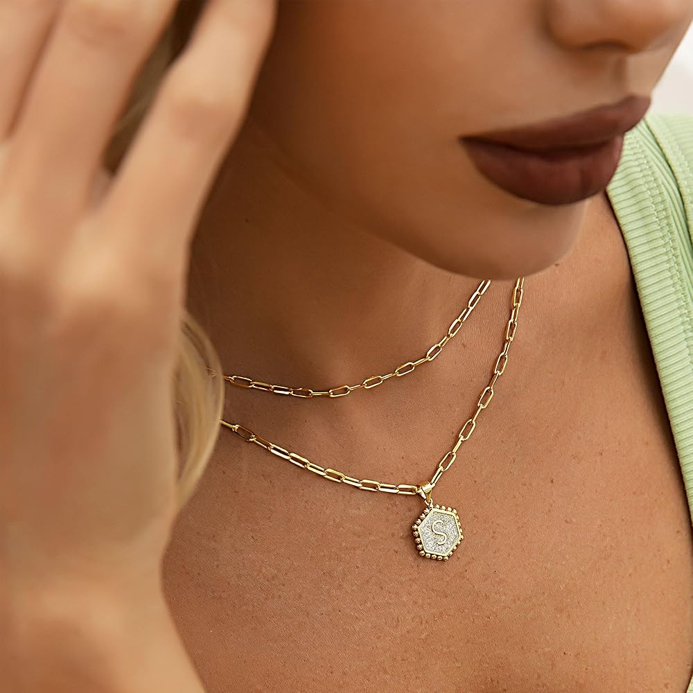 طبقات القلائد الأولية: القلائد الأولية هي من بين أفضل الحلي لإضفاء طابع شخصي على مظهر المجوهرات. من السلاسل الرقيقة إلى المعلقات الجريئة والألماس المتلألئ، هناك خيارات لا حصر لها لتخصيص خط عنقك.