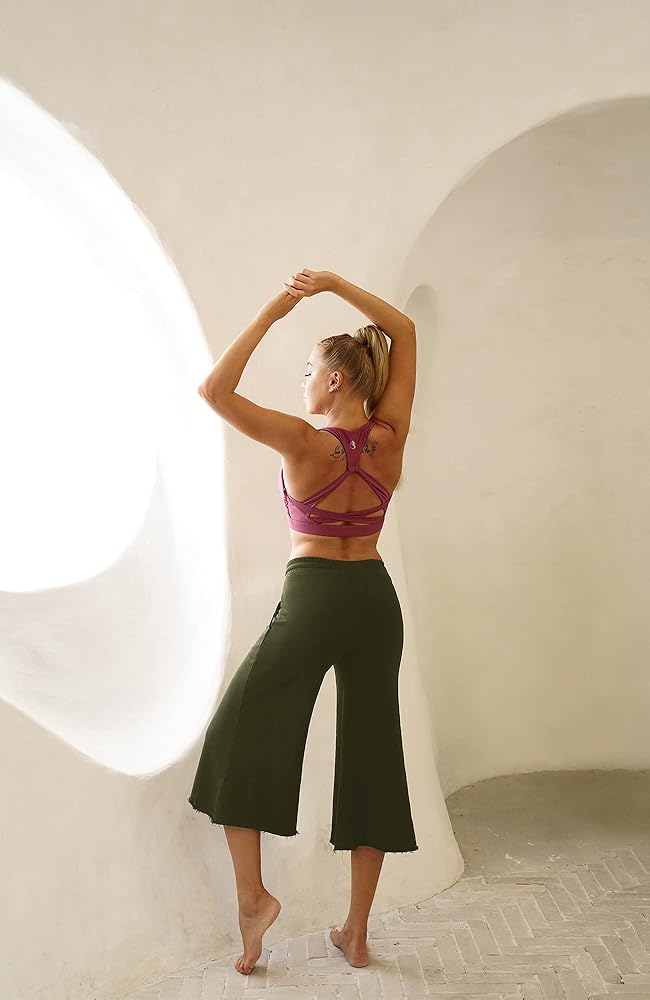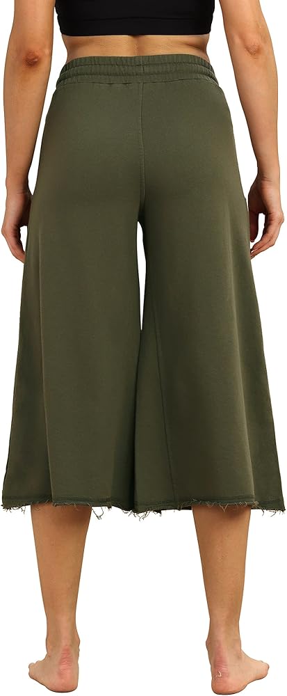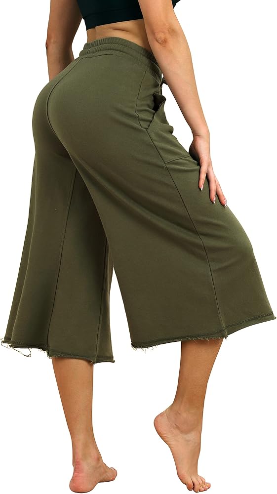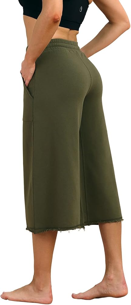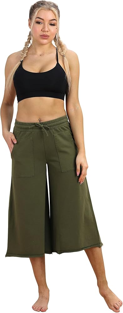 بنطلون كابري كولوتيس من آيسي زون للنساء - بنطال رياضي قطني بخصر مرن وواسع الساق مع جيوب