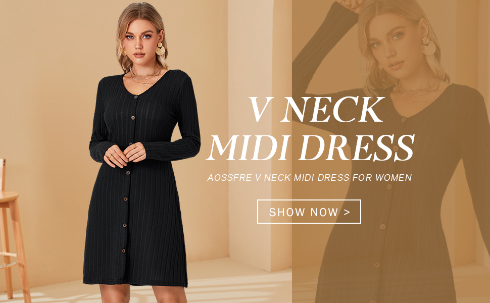 المطابقة: فستان طويل الأكمام ورقبة على شكل حرف V يسهل ارتداؤه لأعلى ولأسفل ويتوافق مع السترة أو السترة الصوفية أو السترة أو المعطف مع قبعتك أو قلادتك. يمكنك ارتداؤه مع الصنادل أو الكعب العالي، وستبدو الأحذية والقبعة أكثر روعة وتخلق أناقة أنيقة. لا أحد يستطيع مقاومة بريقك.
