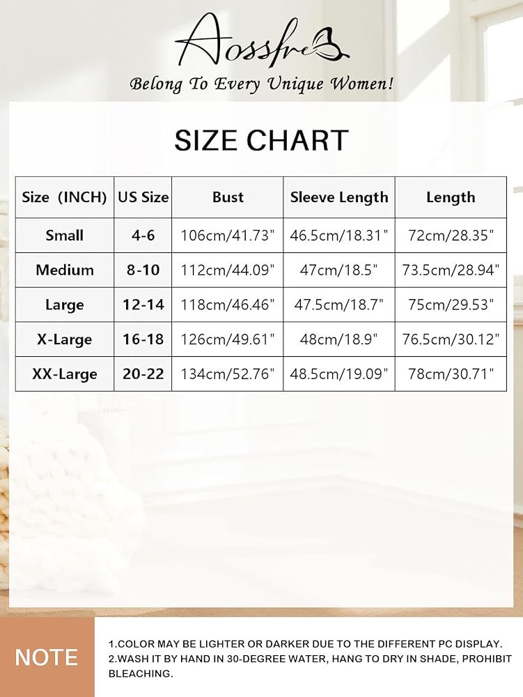 يرجى التحقق من جدول مقاسات Aossfre بعناية قبل الشراء ونأمل أن تتمكن من طلب المقاس المثالي لنفسك.