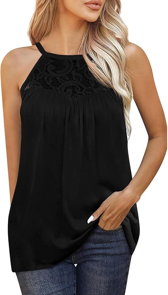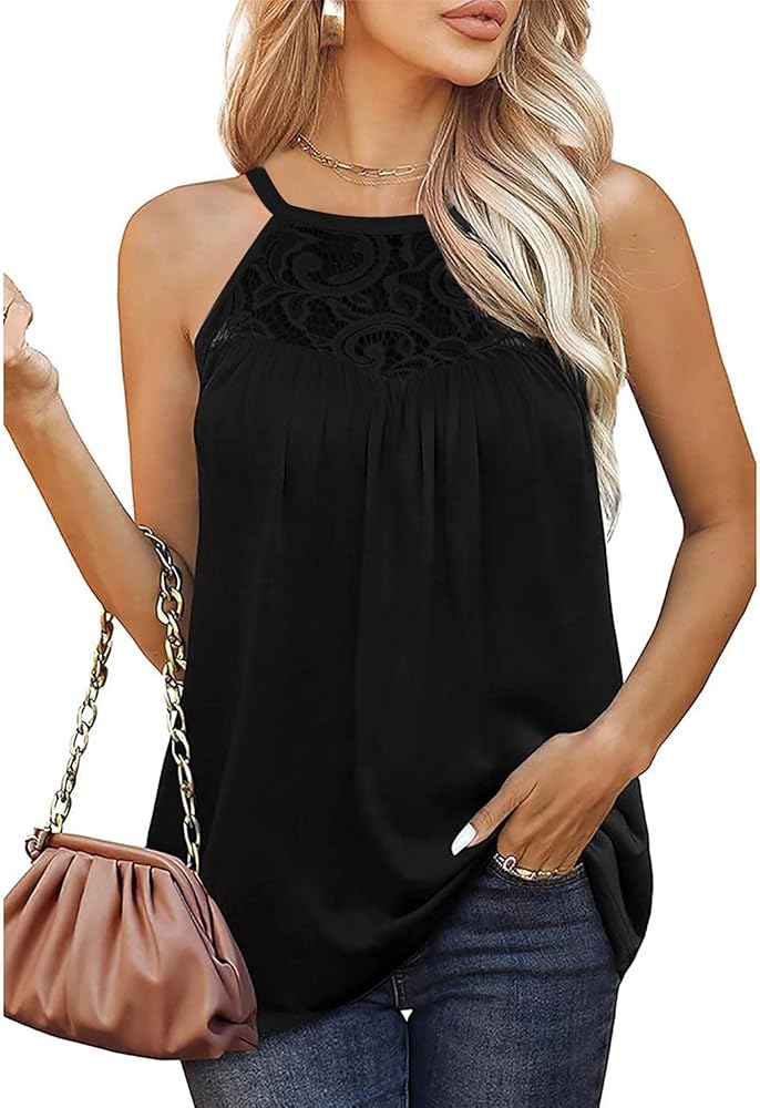 لا غنى عن اقتناء قمصان بدون أكمام من الدانتيل برقبة رسن للنساء في خزانة ملابسك