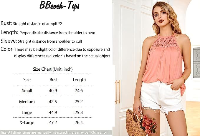 حول BBcoch الدانتيل تانك القمم للنساء الرسن الرقبة بلا أكمام قمصان بروتيل الدانتيل ستيشينغ تونك القمم فضفاضة تناسب