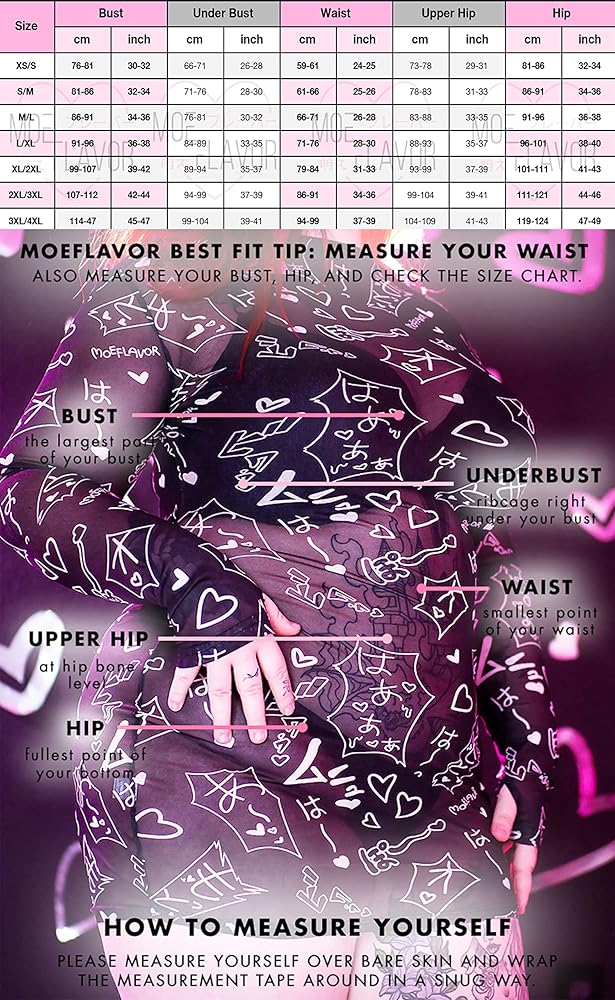 مناسب تمامًا للجميع - تم تصميم كل مقاس خصيصًا للتأكد من أن هذا الزي التنكري يبدو مثيرًا بشكل مدهش عليك. يتوفر فستان MOEFLAVOR's kawaii Manga Noises التنكري للنساء من المقاسات الصغيرة إلى الكبيرة، XS/S إلى 3XL/4XL.