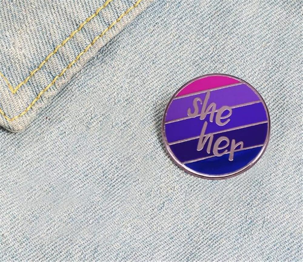 هي / لها ضمير المينا دبوس هي لها ثنائي الجنس فخر العلم دبوس مخصص دبابيس قميص طية صدر السترة المعلم حقيبة الظهر شارة الكرتون هدية دبابيس دبابيس للنساء