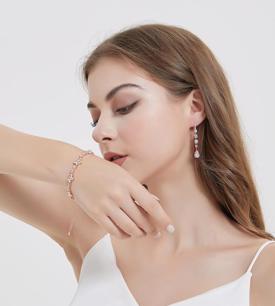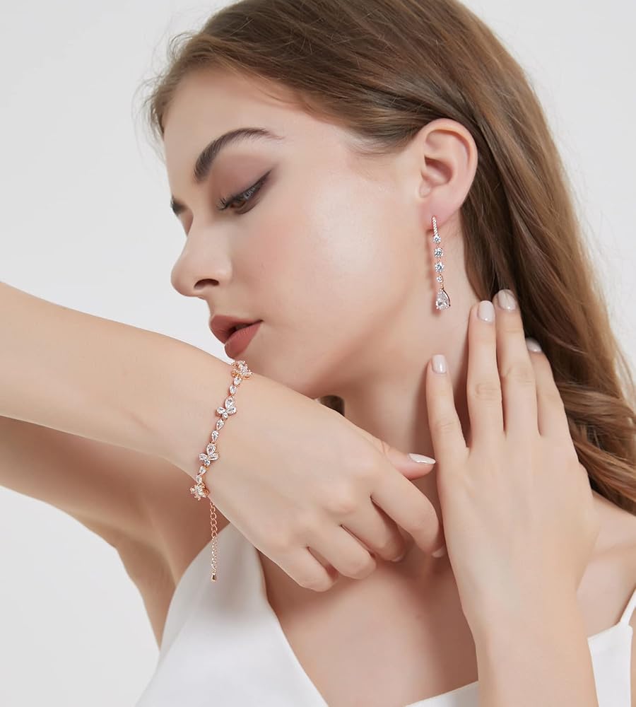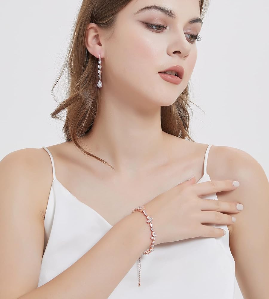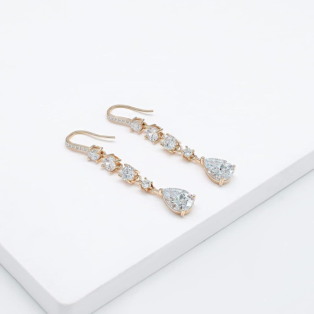 مجموعة مجوهرات من الأقراط المتدلية على شكل دمعة من الزركونيا المكعبة؛