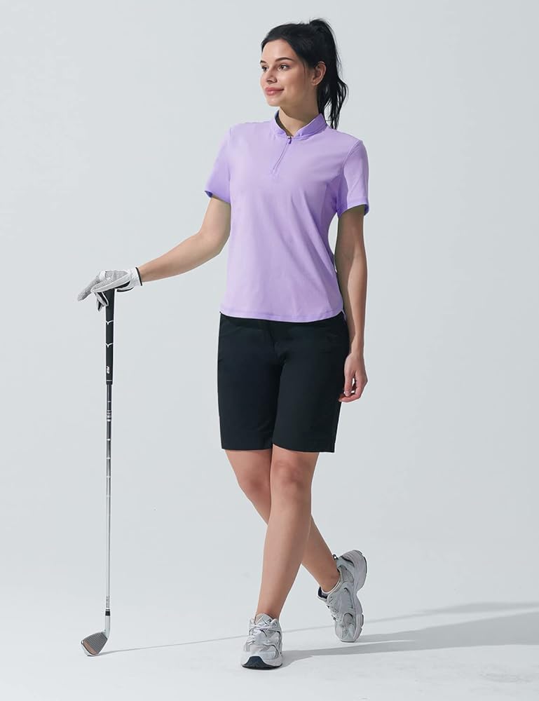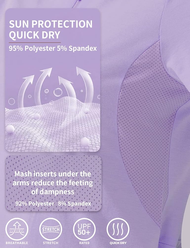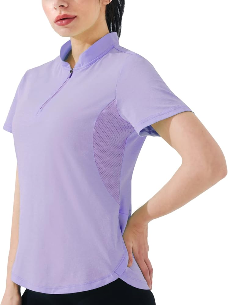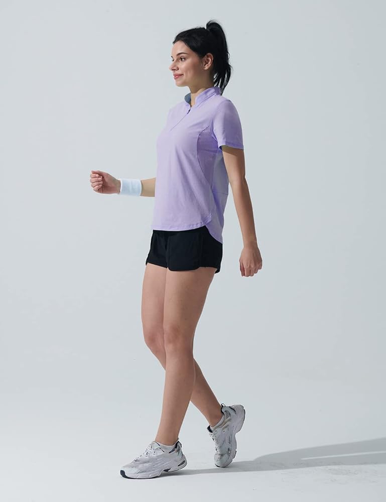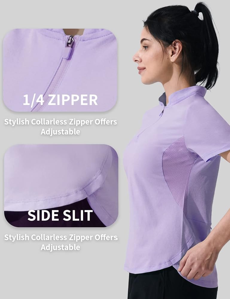 • 【Mesh Insert 】Mesh Insert in underarms reduces the feeling of the dampness of this collared shirt. Our workout shirts for women pull sweat away from the body so it can evaporate faster. The stretchy and moisture-wicking fabric allows unrestricted movement and quickly absorbs sweat from the skin, transporting it to the surface of the fabric to keep you dry during long outdoor activities.