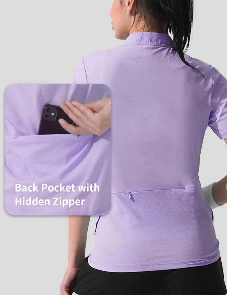 Hiverlay Long Sleeve Running Shirts for Women UPF 50+ Quarter Zip Workout Golf Hiking Tennis Shirts with Pocket Pullover 【Mesh Insert & Reflective Details】Mesh Insert in underarms reduce the feeling of dampness of this collared shirts.Our workout shirts for women pulls sweat away from the body so it can evaporate faster.Since we using reflective details, it's also a good long sleeve running shirts for women that ensure visible when training sessions stretch into the evening or begin before sunrise.【Zip Pocket on Back】Back pocket with hidden zipper can keep your cash and keys safe when you're riding, running,and holds 5.5" mobile phone for secure storage.【Hidden Watch Hole & Thumbhole】The Watch window on both sleeves allows you to easily check the time and heart rate while you are running or cycling.THUMBHOLE shirts for women hold sleeves in place to keep warmth in and offer enhanced sun protection.【Polo Stand-up Collar】1/4 zip collared shaping the shoulder and neck line.Half-zip can be used to regulate internal temperature and better ventilation.SIDE SLIT design Shaping Perfect Proportions.Its long sleeves and side air vents makes it perfect for hiking or golf activity in the sun.【Occasion】Hiverlay Quick-Drying UPF 50+ shirts Comfortable to home sportswear,easy to match sports attire.For golf,hinking,climbing,tennis,fishing,camping,seaside,sailing,traveling and any of your favorite outdoor activities,a good companion on the way to sports.
