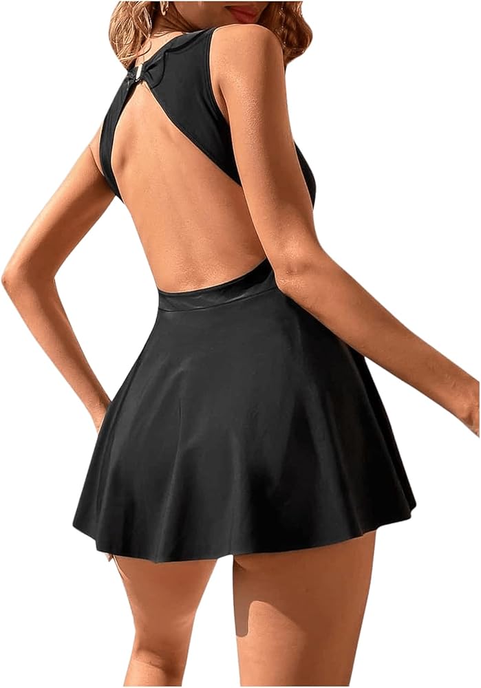 فستان سباحة نسائي من قطعة واحدة برقبة على شكل حرف V من SweatyRocks فستان سباحة مكشكش بدون ظهر