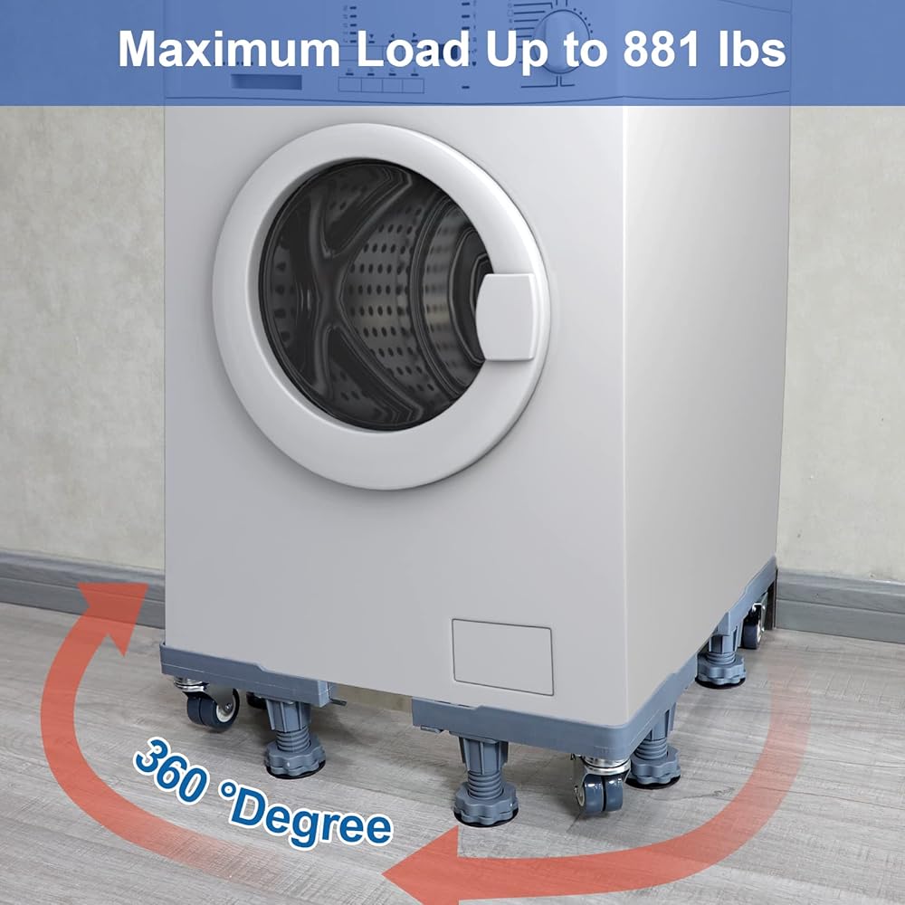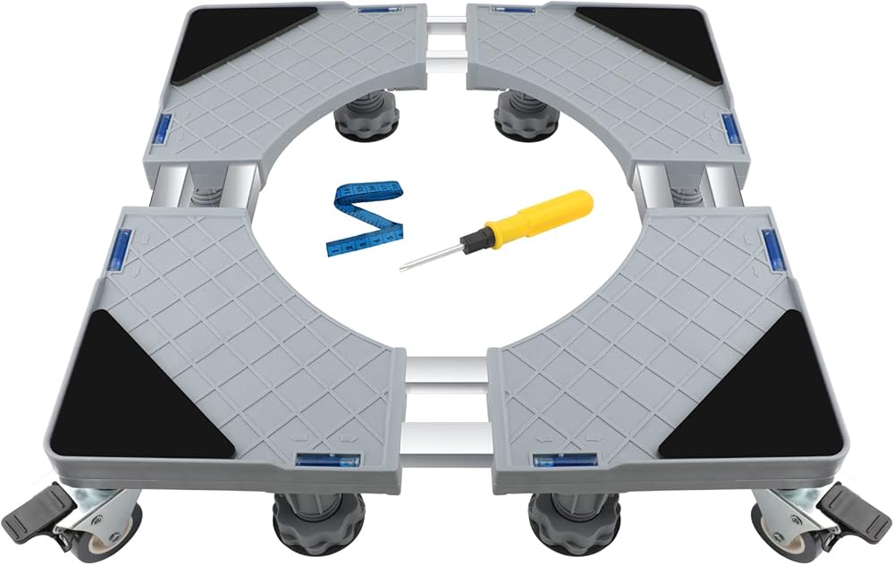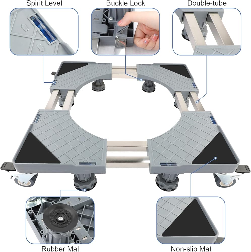 قاعدة موبايل لثلاجة صغيرة، قاعدة غسالة قابلة للتعديل مع 4 عجلات قفل و 8 أقدام قوية لمجفف غسالة الملابس، الثلاجة