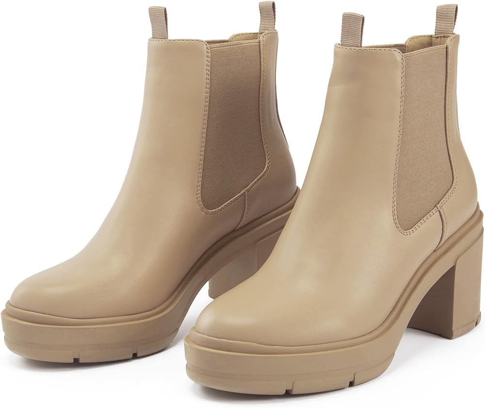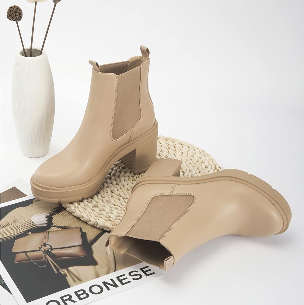 أحذية تشيلسي المرنة: أحذية الكاحل ذات الكعب العالي المكتنزة للنساء، أحذية تشيلسي المرنة الكاجوال يمكن ارتداؤها وخلعها بسهولة.