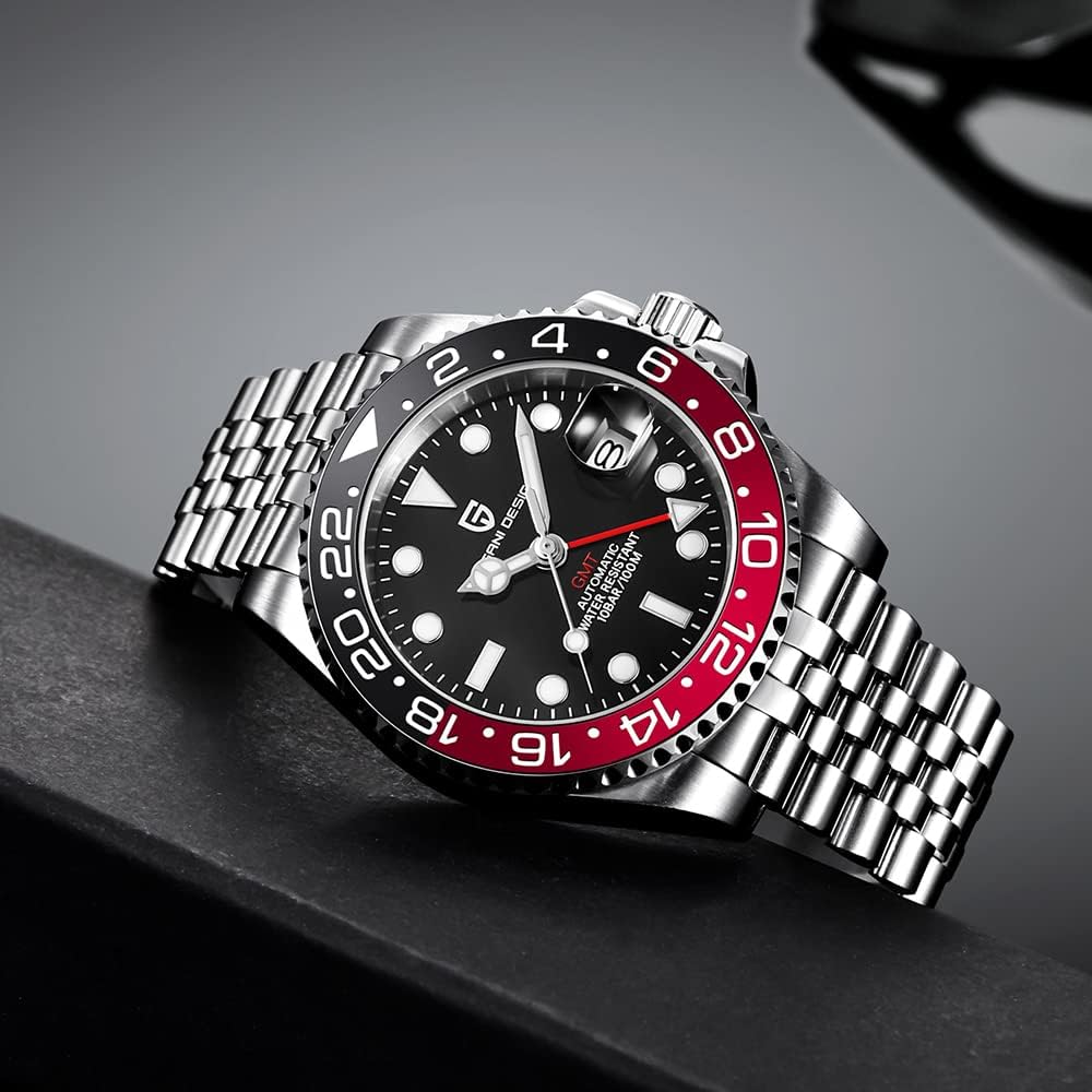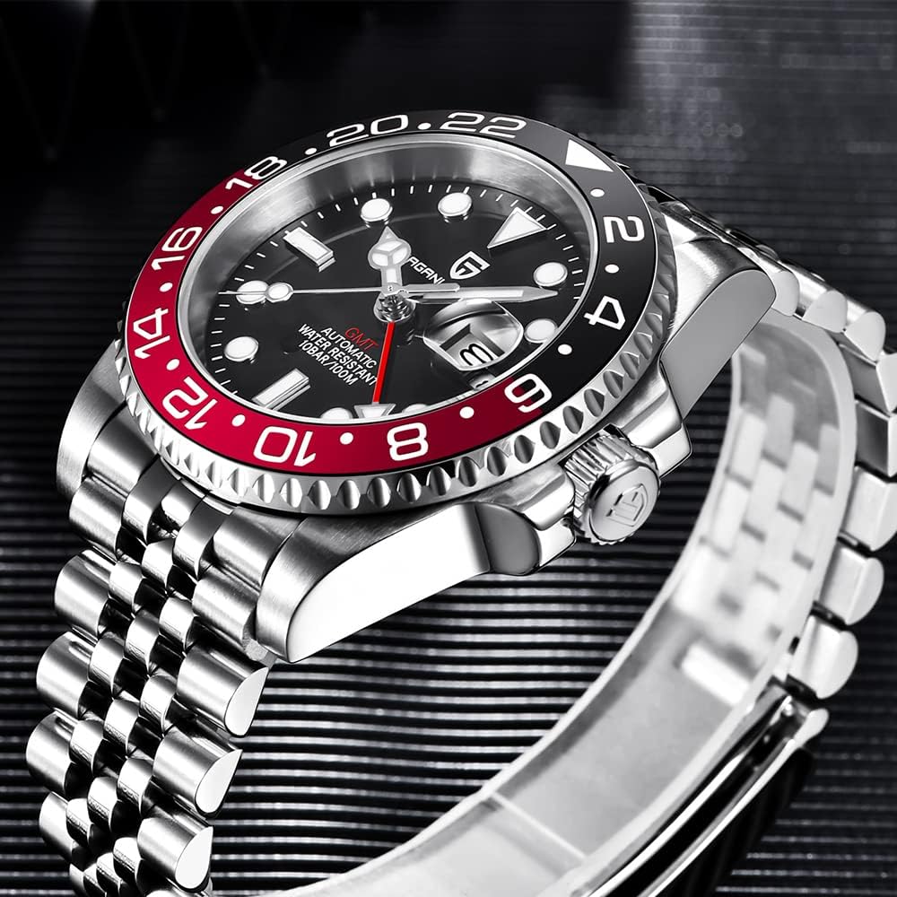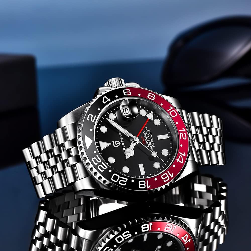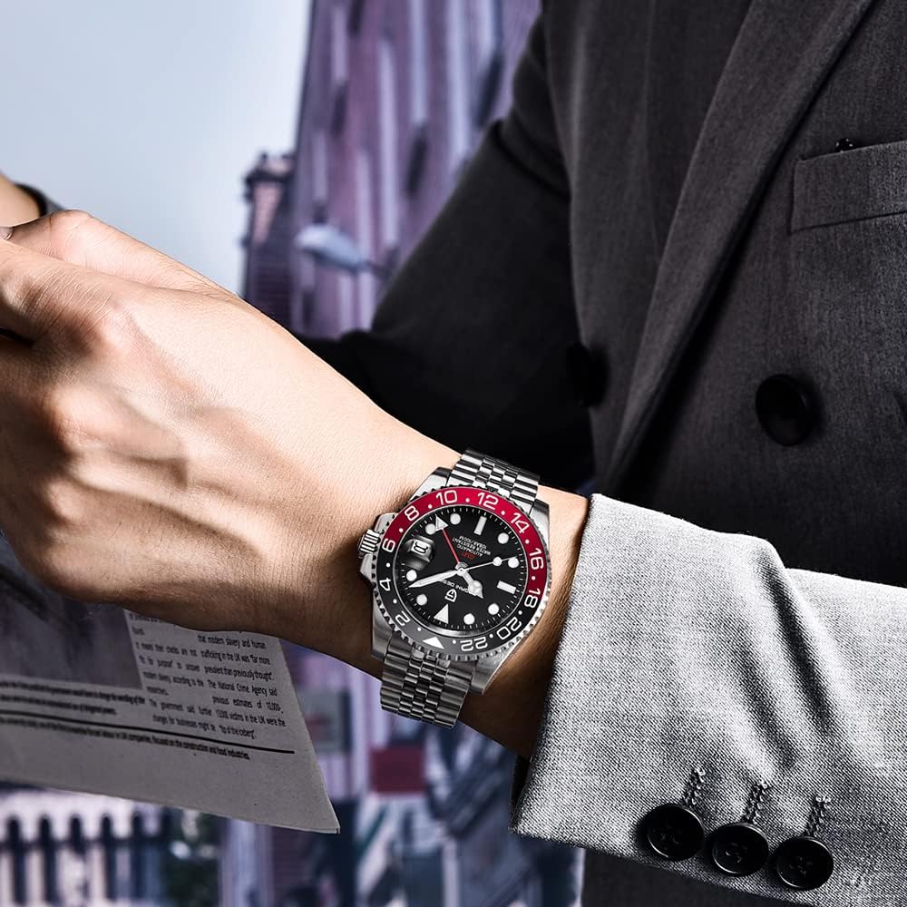 ⌚ خامة الساعة: مرآة صناعية من الياقوت، مقاومة للخدش وناعمة نسبيًا. حزام الفولاذ المقاوم للصدأ متين للغاية. ومع وظيفة GMT، يمكن أن يتطابق اللون بسهولة مع أي من ملابسك. مثالية للأنشطة اليومية والأنشطة التجارية.