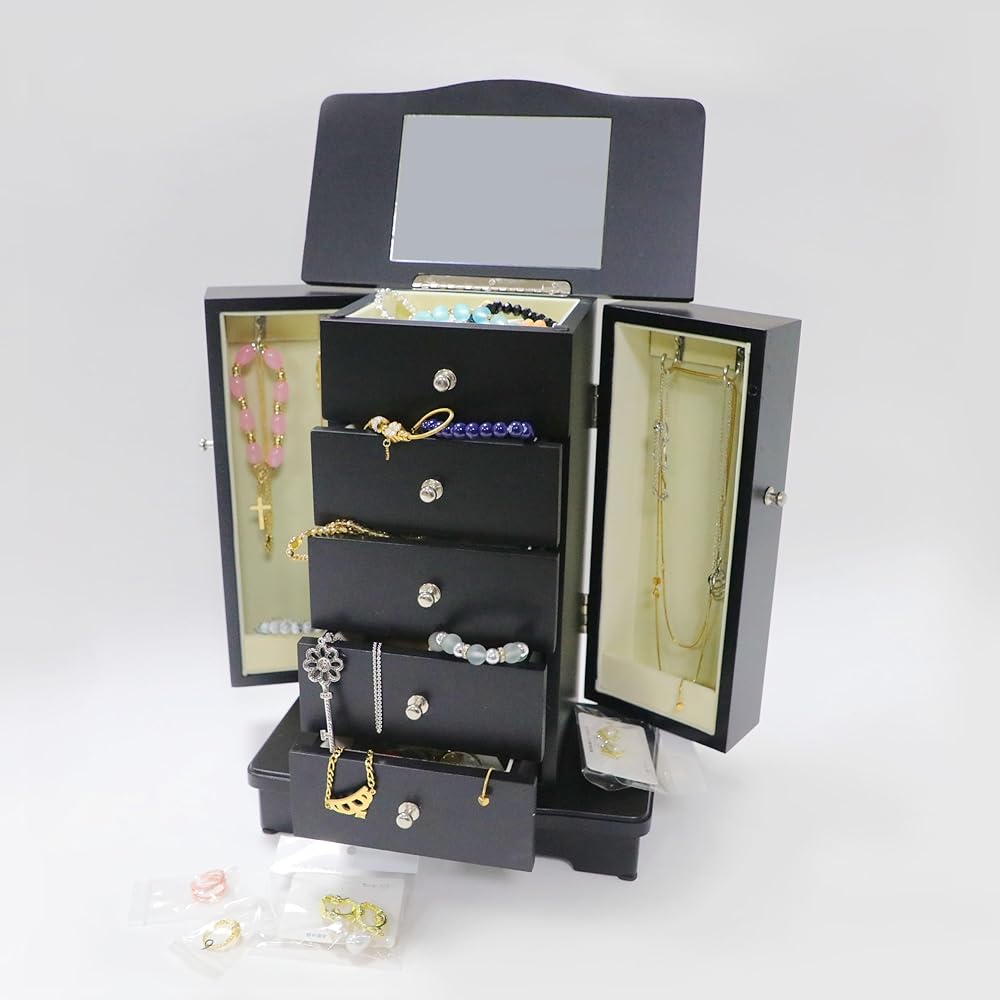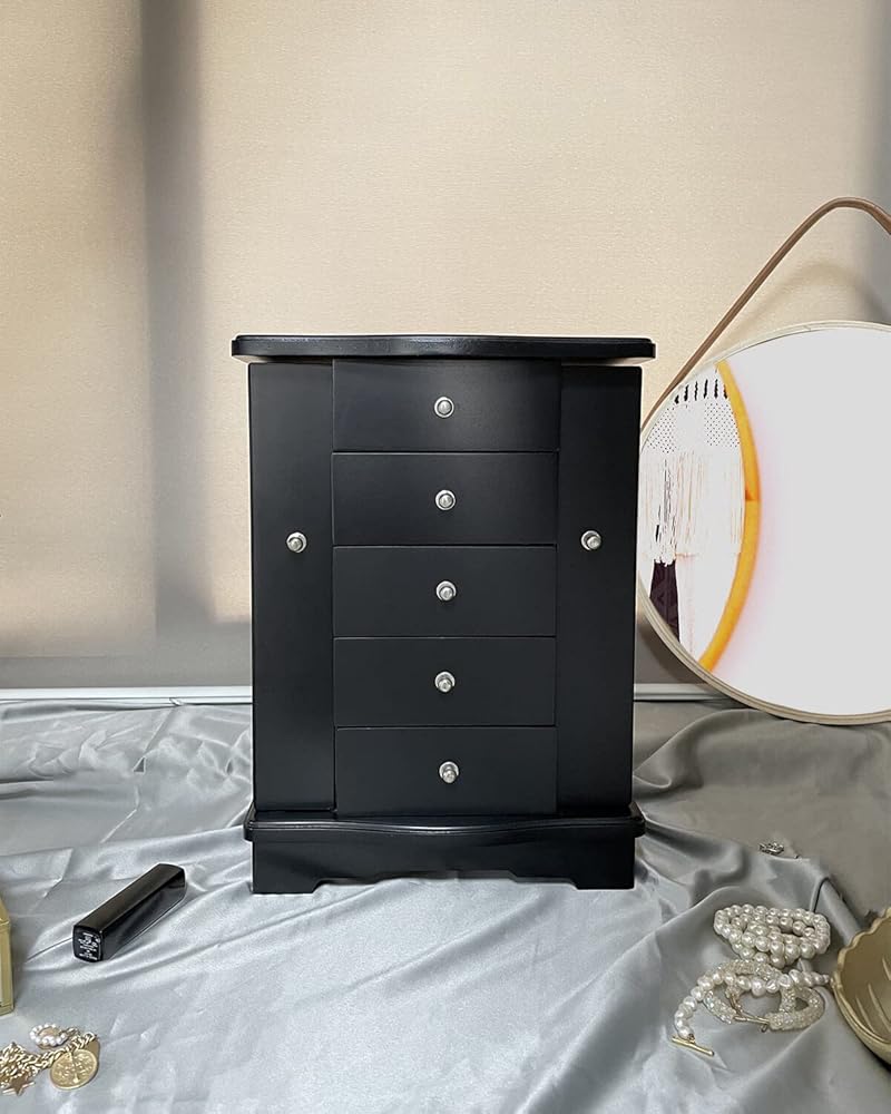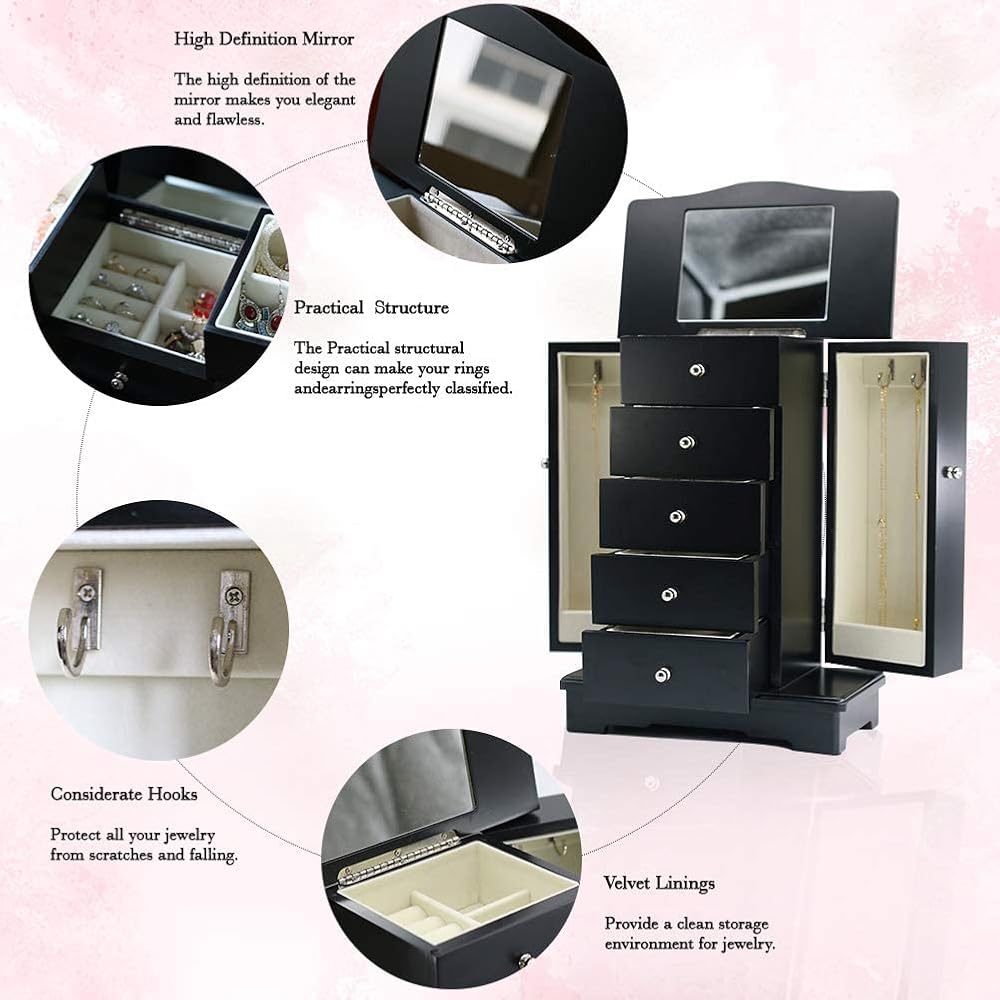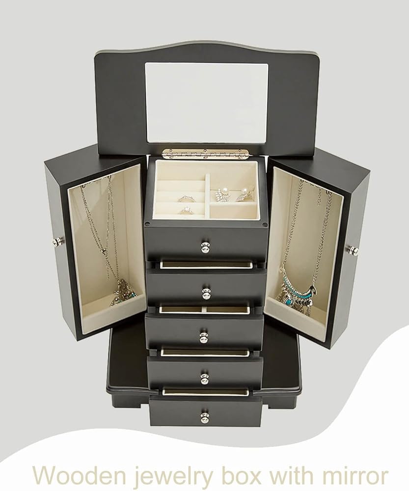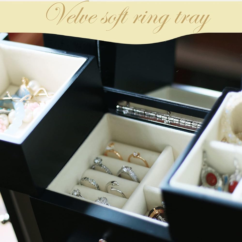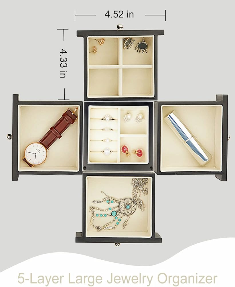 حامل مجوهرات لا تشوبه شائبة: مقاس 13.42 بوصة × 9.44 بوصة × 5.43 بوصة، يوفر صندوق المجوهرات الفريد الخاص بنا طريقة منظمة لتخزين الخواتم والقلائد والأقراط والأساور والدبوسات. إنه يضيف تنظيمًا لحياتك اليومية.