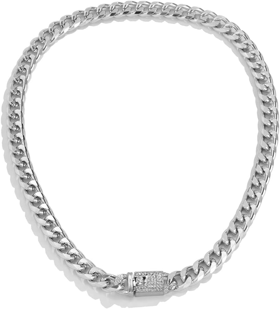 مادة عالية الجودة - القلادة الكوبية مصنوعة من سبيكة عالية الجودة وأحجار الراين الشفافة، صلبة ومتينة، وخالية من الرصاص والنيكل، صحية وآمنة.