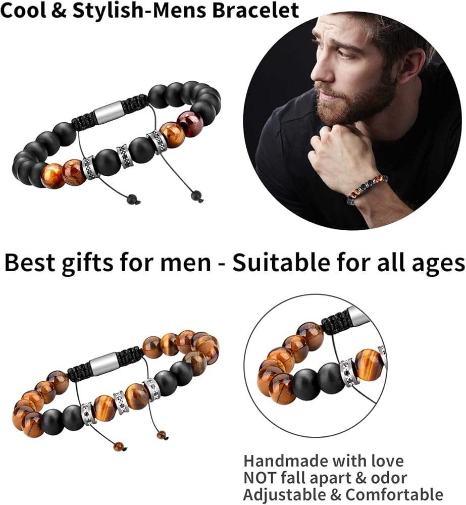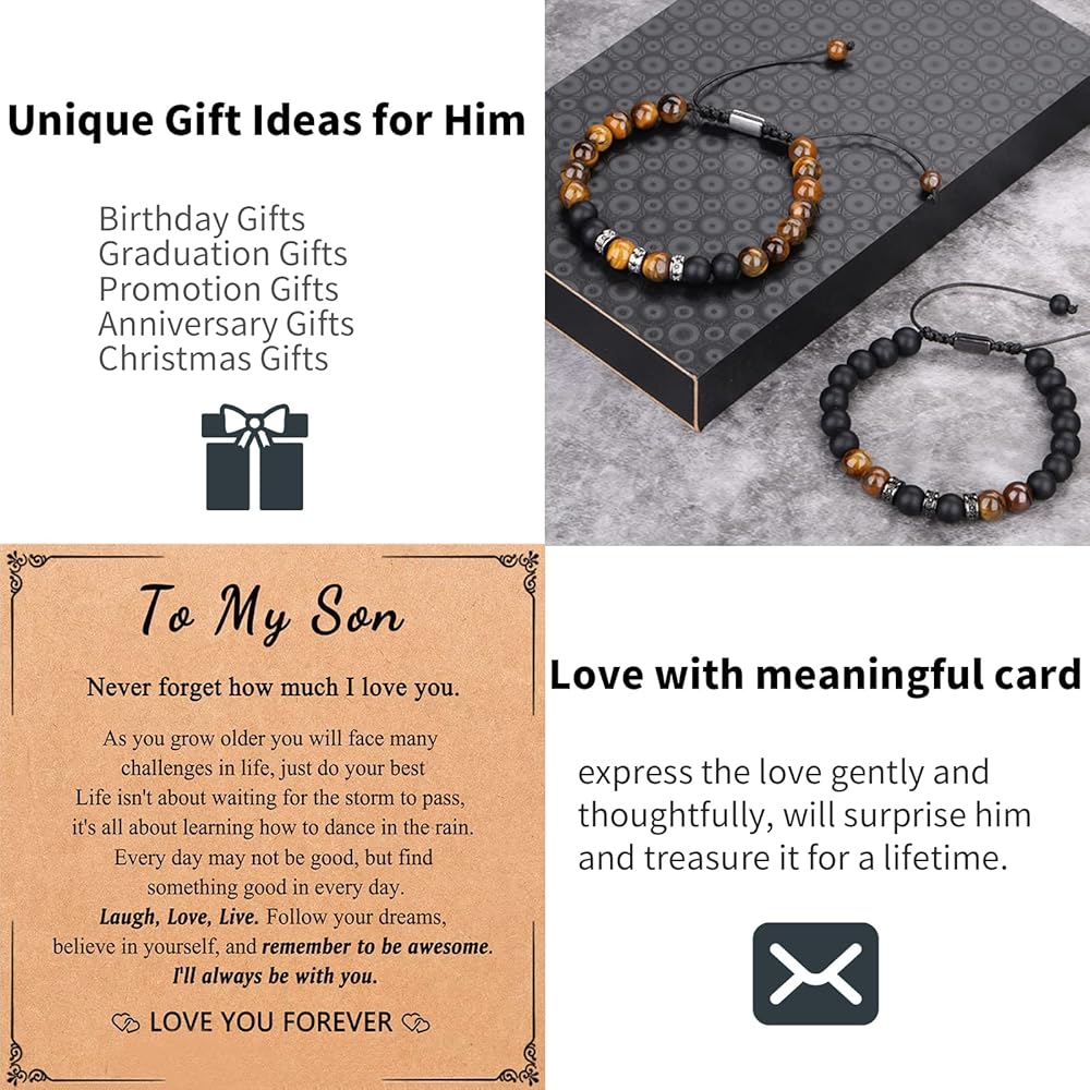 • 【هدية له】سوف تحصل على سوارين مع بطاقة ذات معنى واحدة في صندوق المجوهرات. أفضل هدية للرجال والأب والصديق والابن والزوج والأخ في أعياد الميلاد والعطلات والذكرى السنوية وعيد الميلاد وعيد الحب والمزيد.