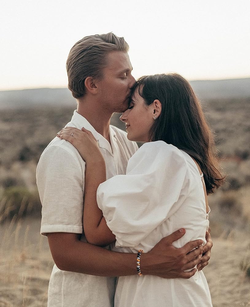 • 【سوار إلى ماي مان】"في اليوم الذي التقيت بك فيه، وجدت القطعة المفقودة. عندما أقول إنني أحبك أكثر، لا أعني فقط أنني أحبك أكثر مما تحبني. ربما أتأخر قليلاً كن الأول لك، لكني أريد أن تكون كل نهايتي معك." هذه الأساور هي هدية ذات معنى للتعبير عن الحب، وسوف تفاجئه وتقدرها مدى الحياة.